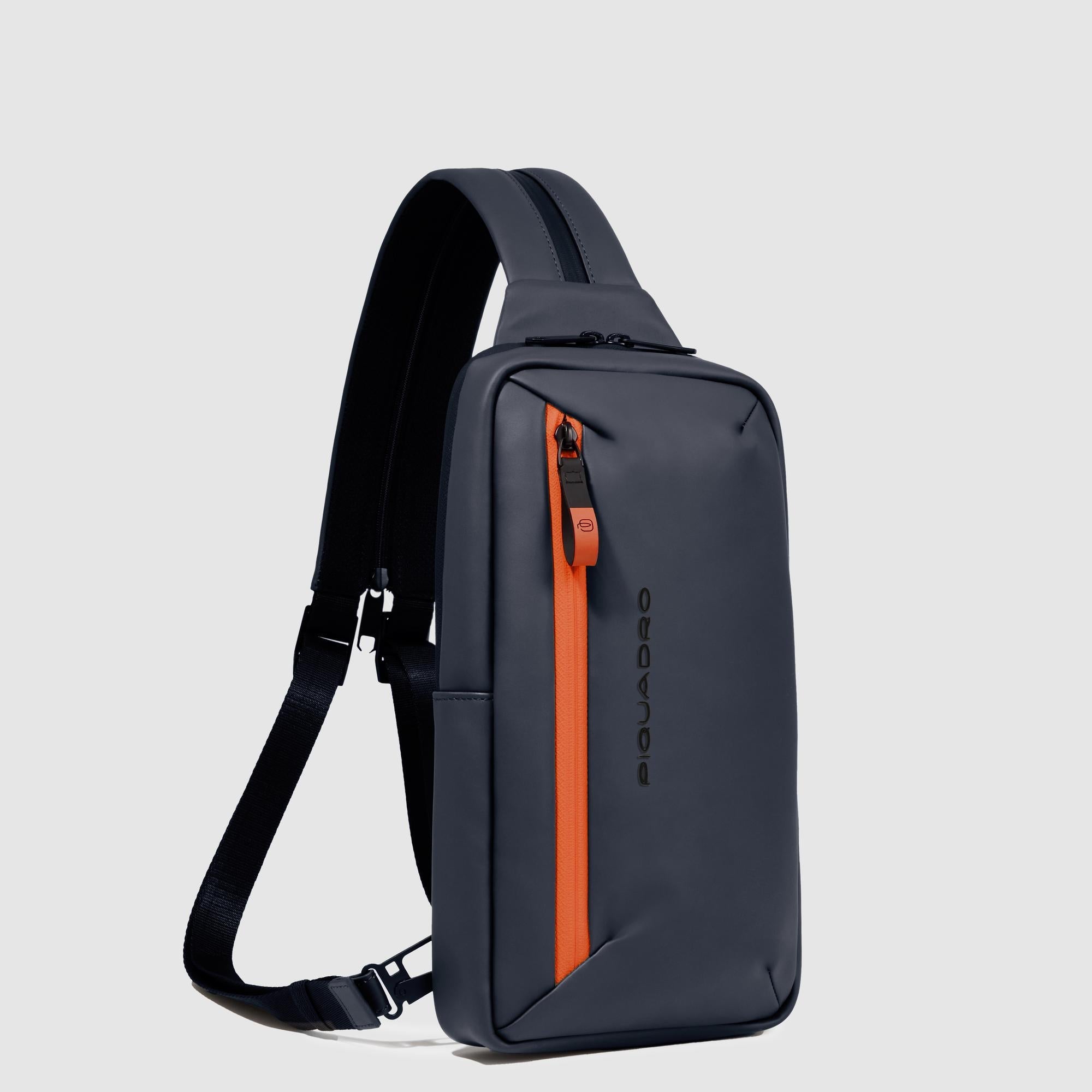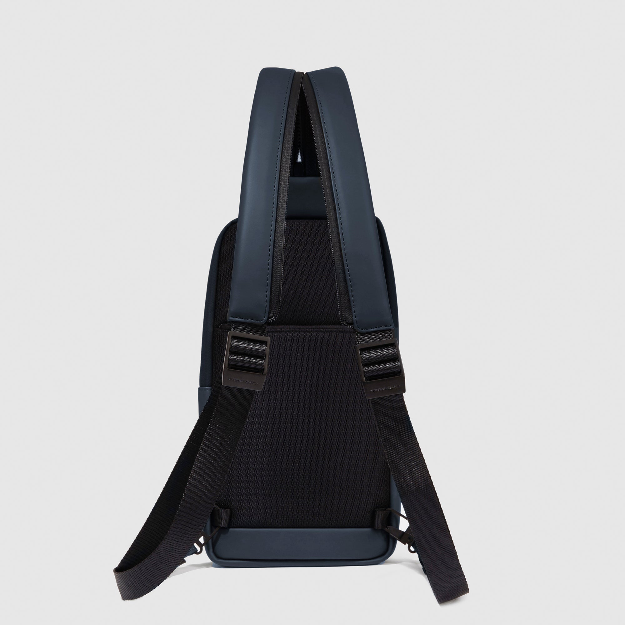 Sling bag im iPad-Format aus gummiertem, wasserfestem Stoff mit Rucksack-Option, iPad®mini-Fach und Tasche für Piquadro Smart Tracker, RFID-geschützt