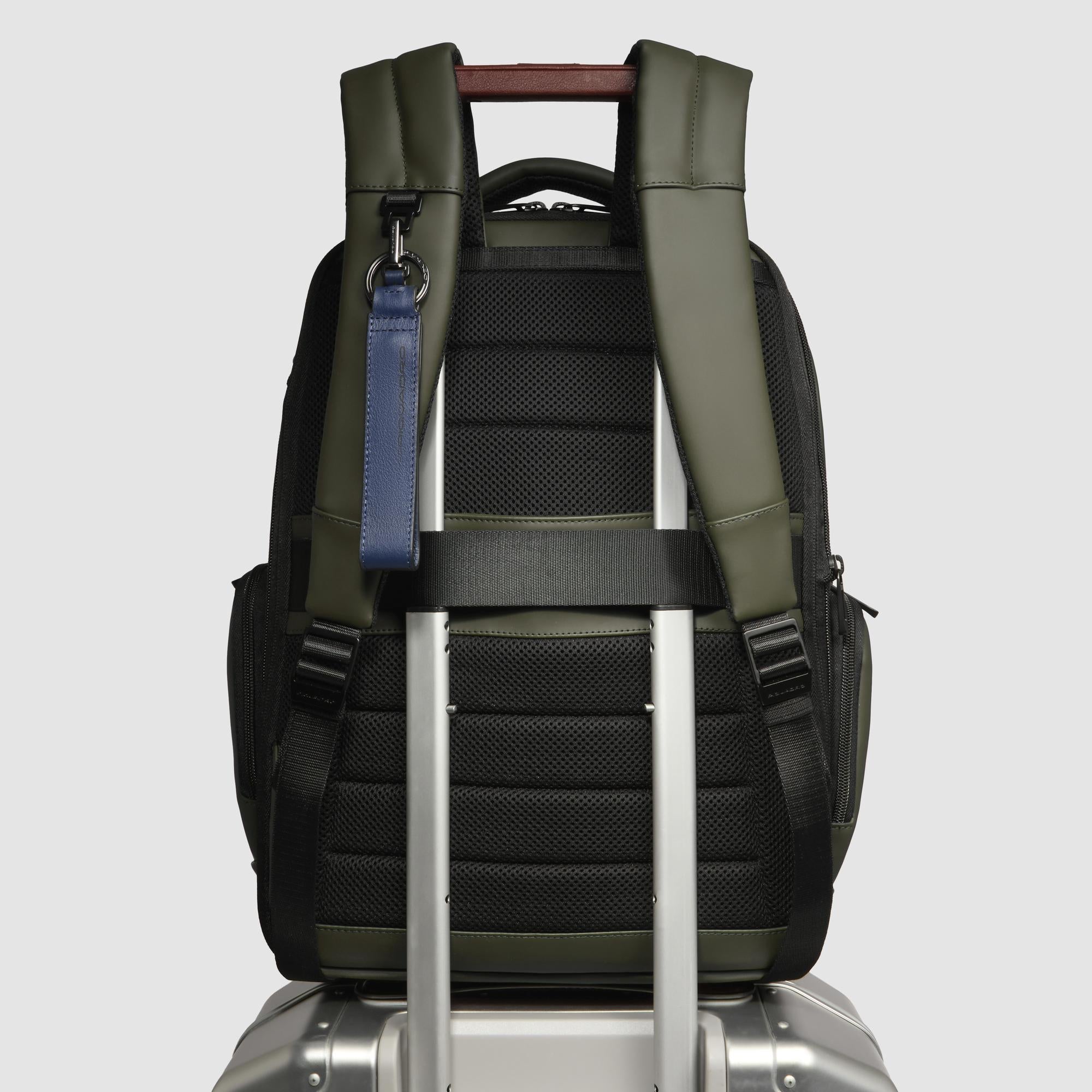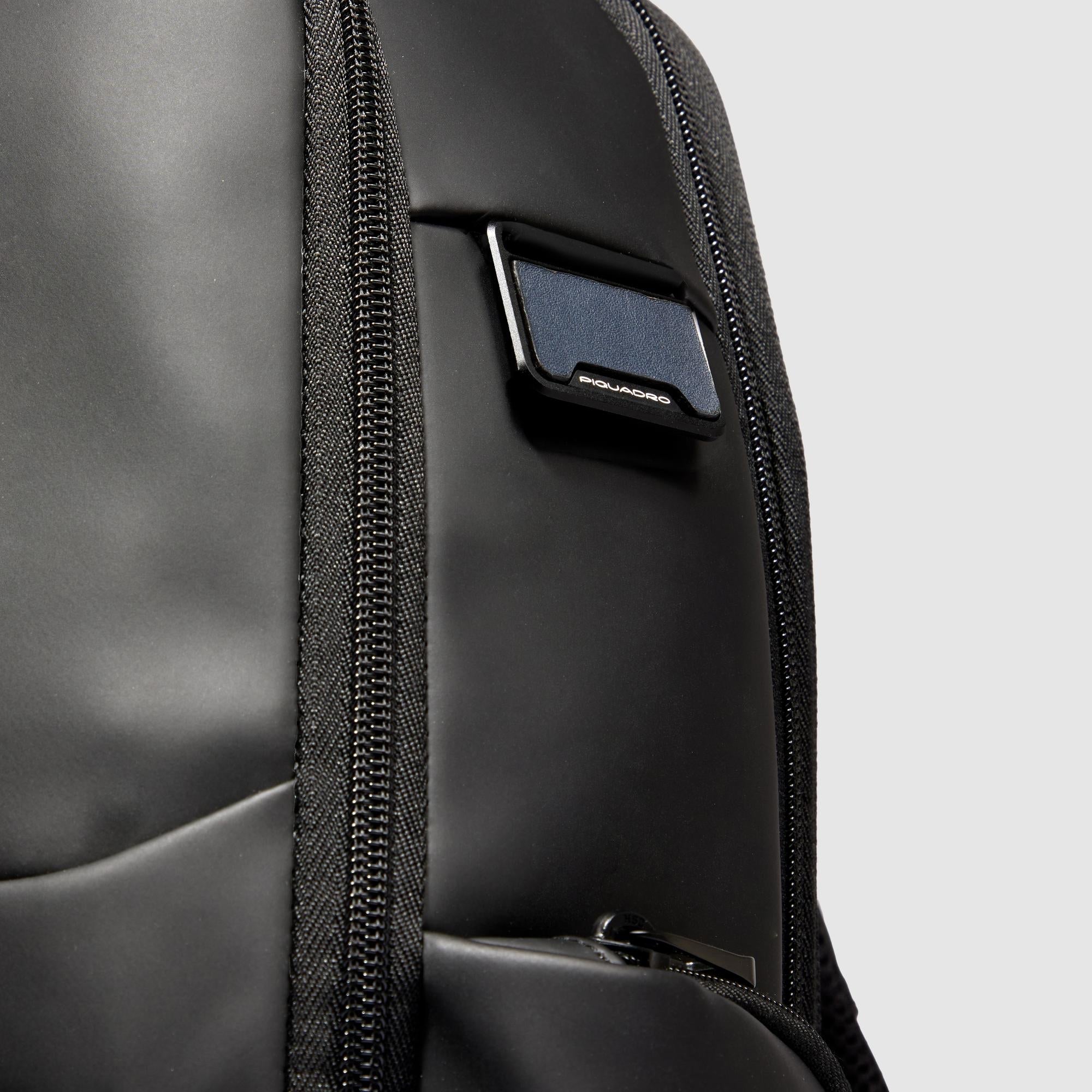 Expandable, laptop and iPad® fast-check backpack in rubberized, water resistant fabric with RFID and shock absorbing protection