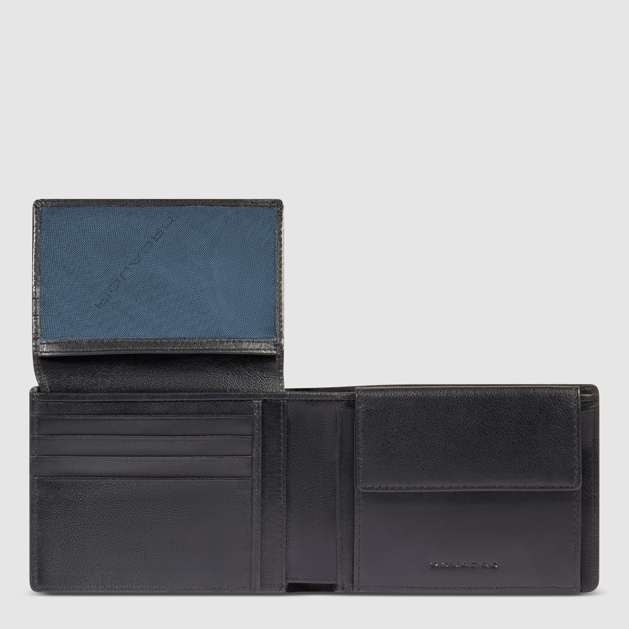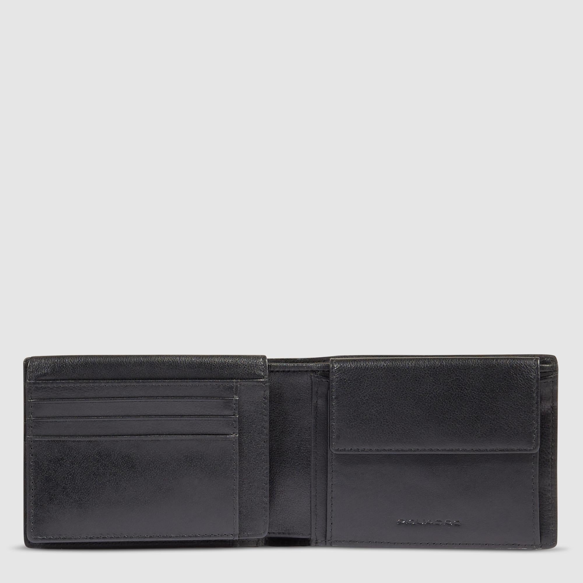 Men’s leather wallet with flip up ID window, coin pocket credit card slots and RFID protection
