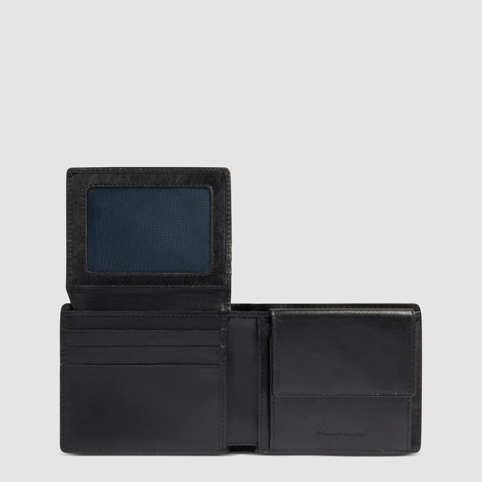 Men’s leather wallet with flip up ID window, coin pocket, credit card slots and RFID protection