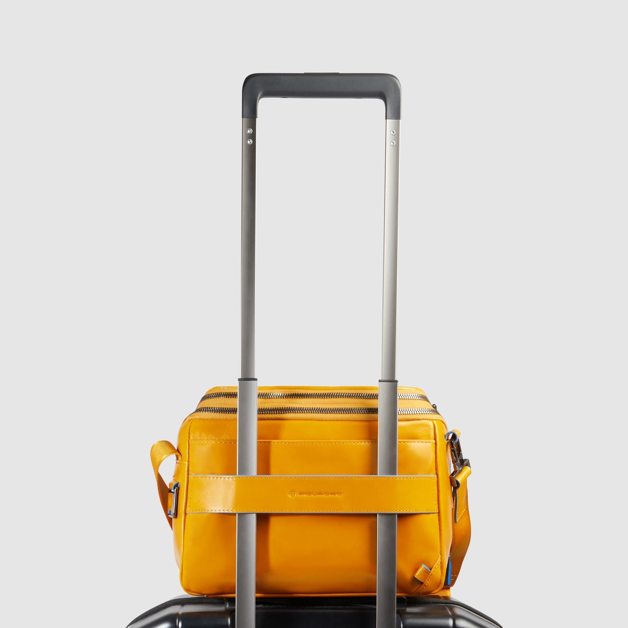 Personalizable crossbody bag in leather for iPad®mini with pockets for AirPods® and mouse and RFID protection