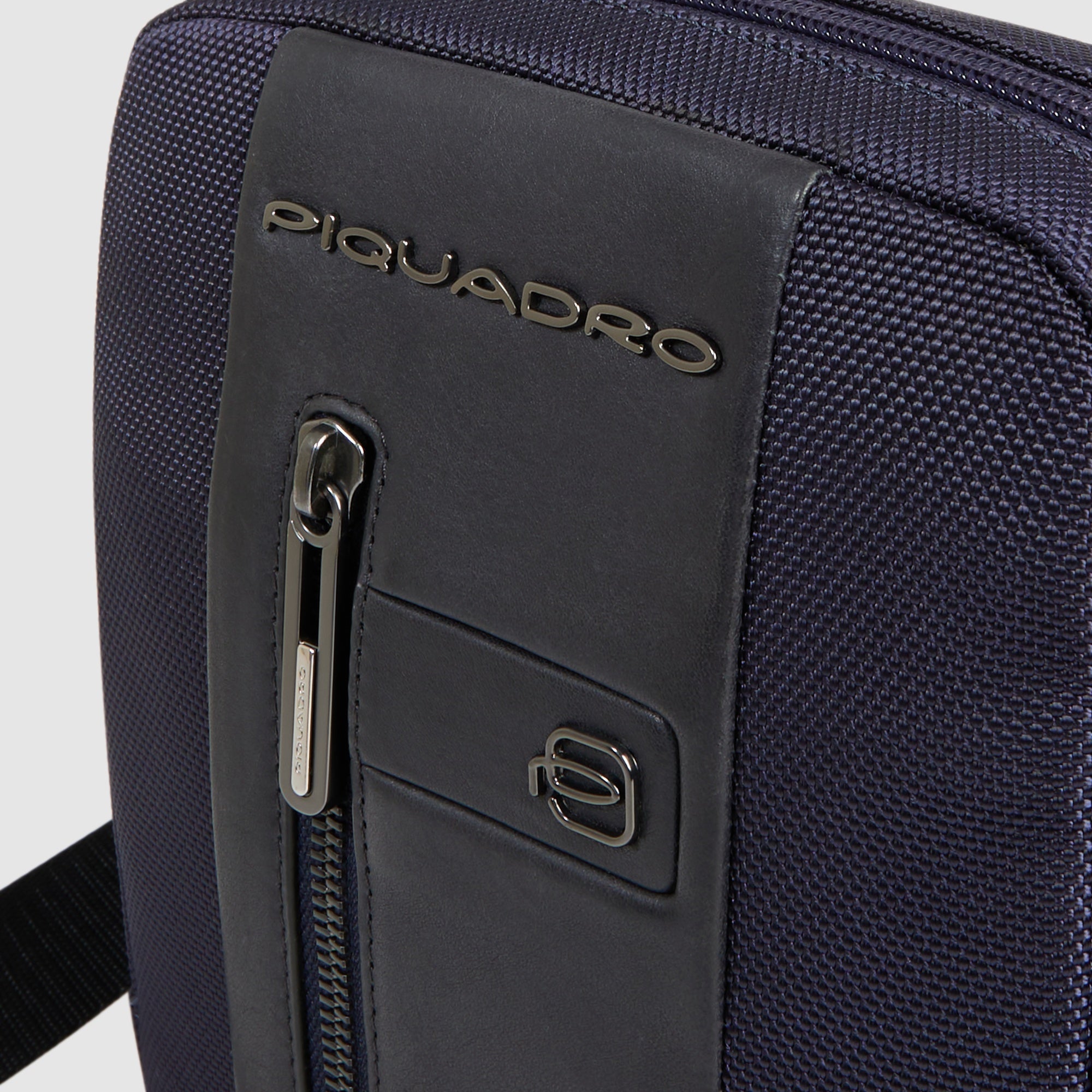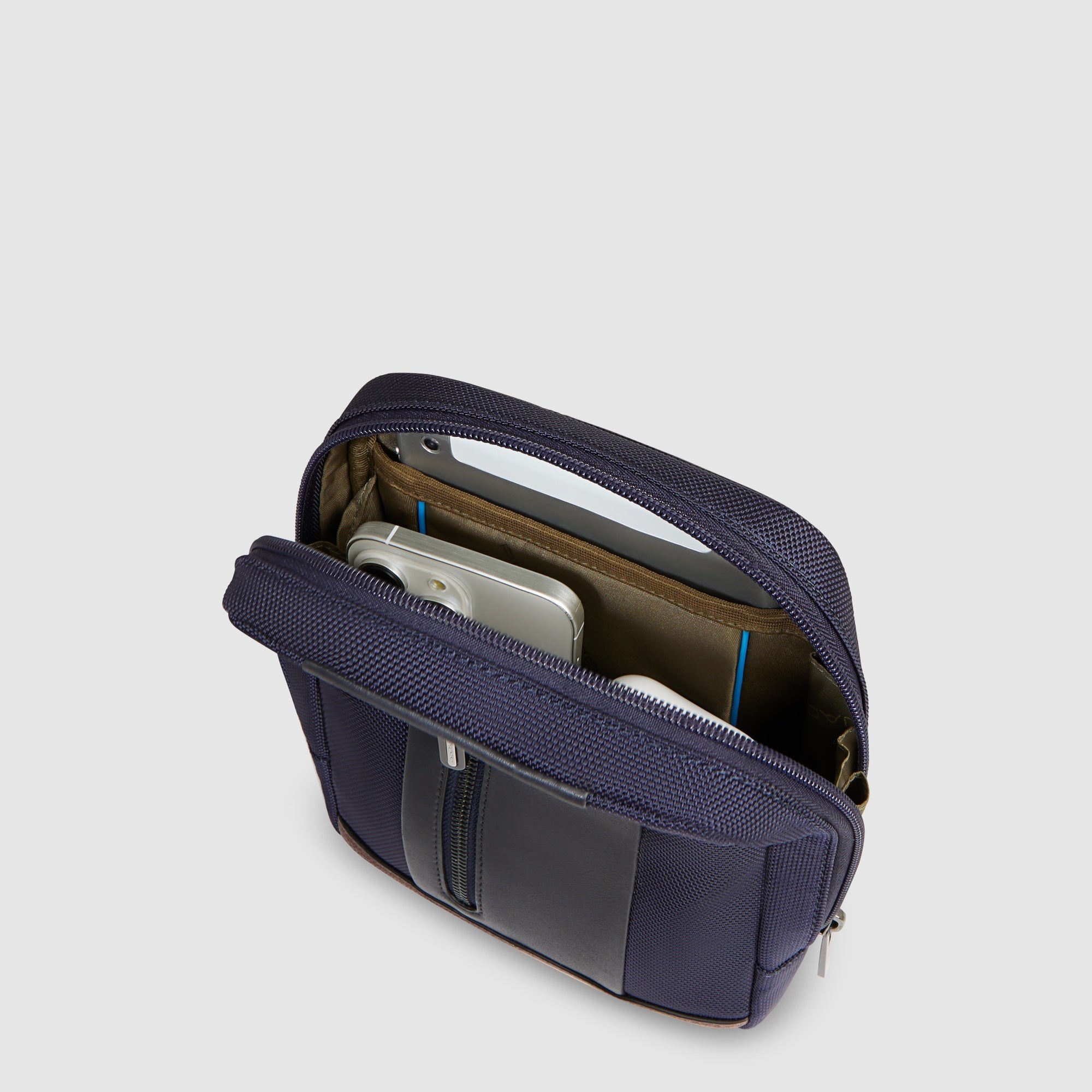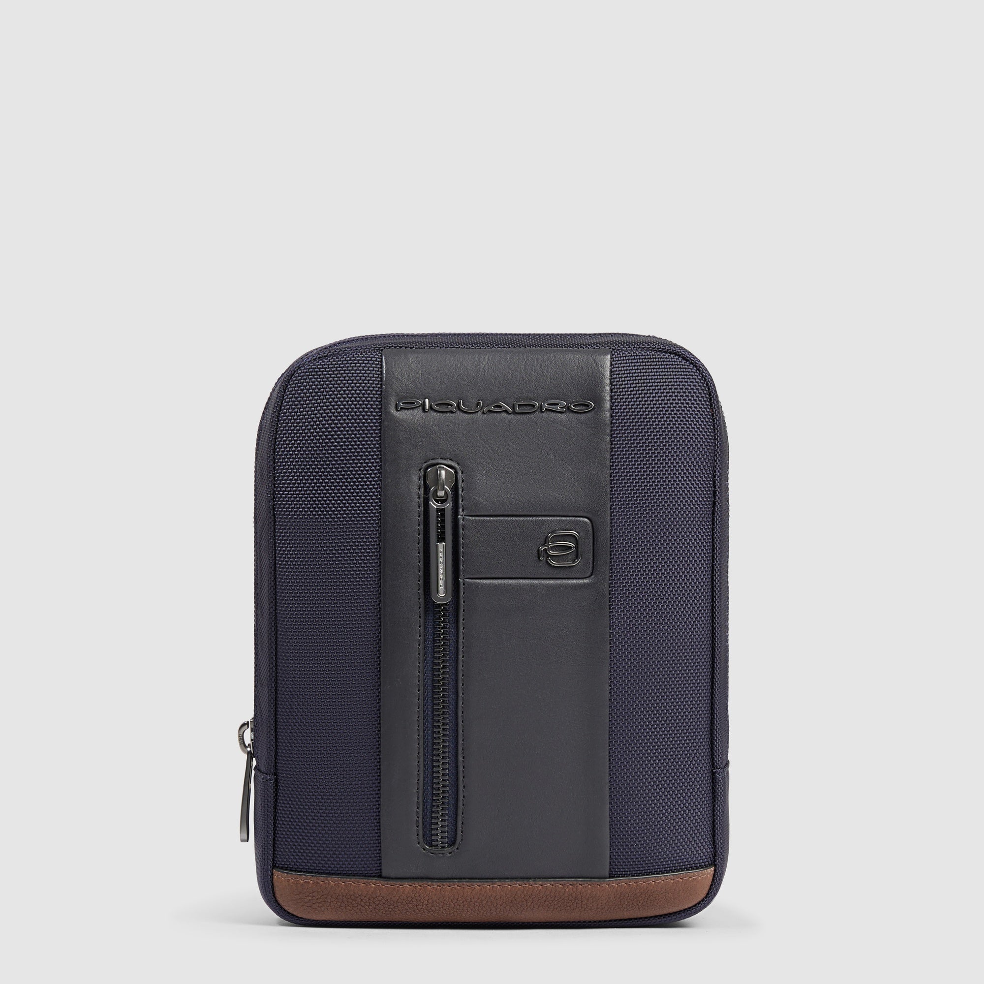 Men's crossbody bag in recycled textile and leather for iPad®mini with RFID protection and pocket for AirPods®