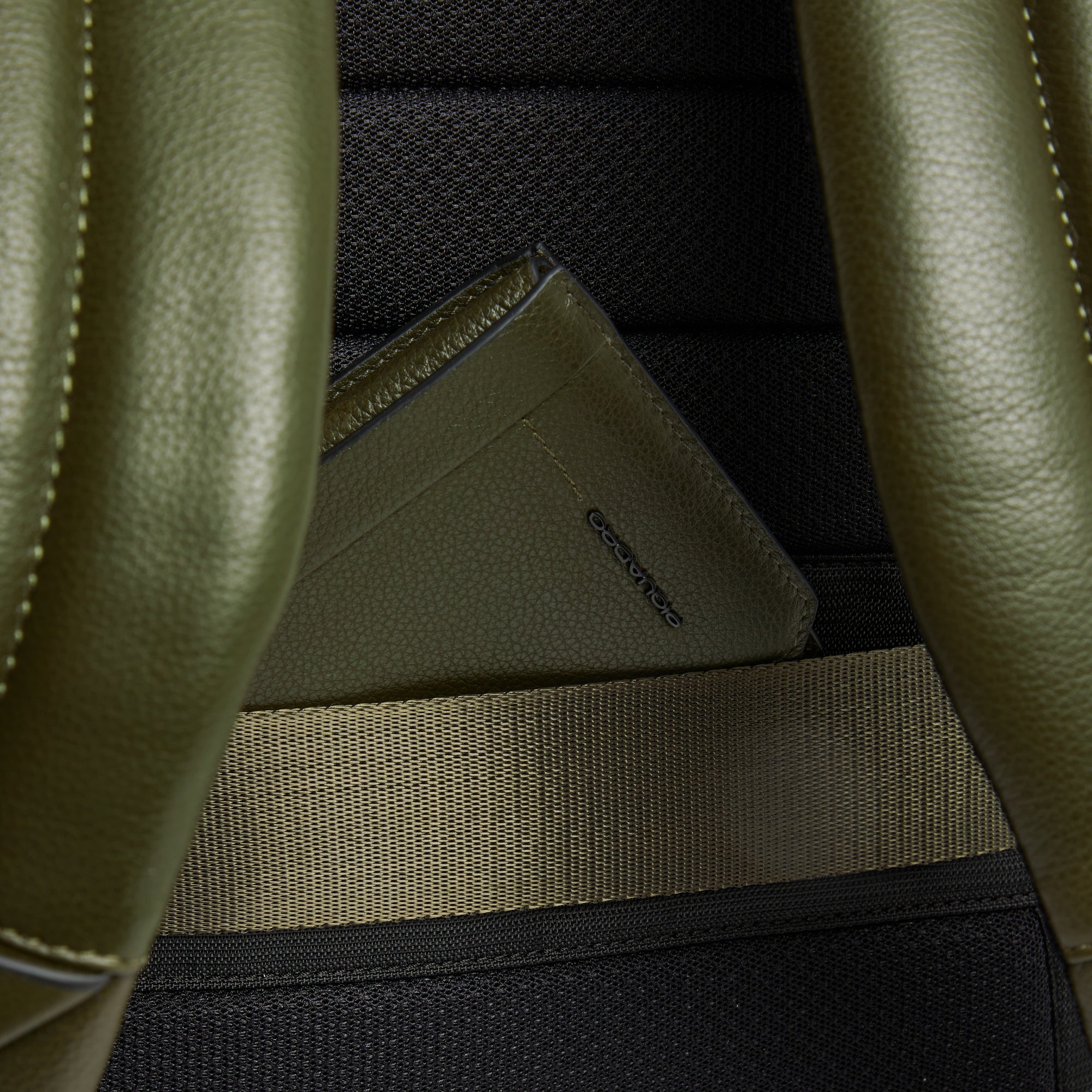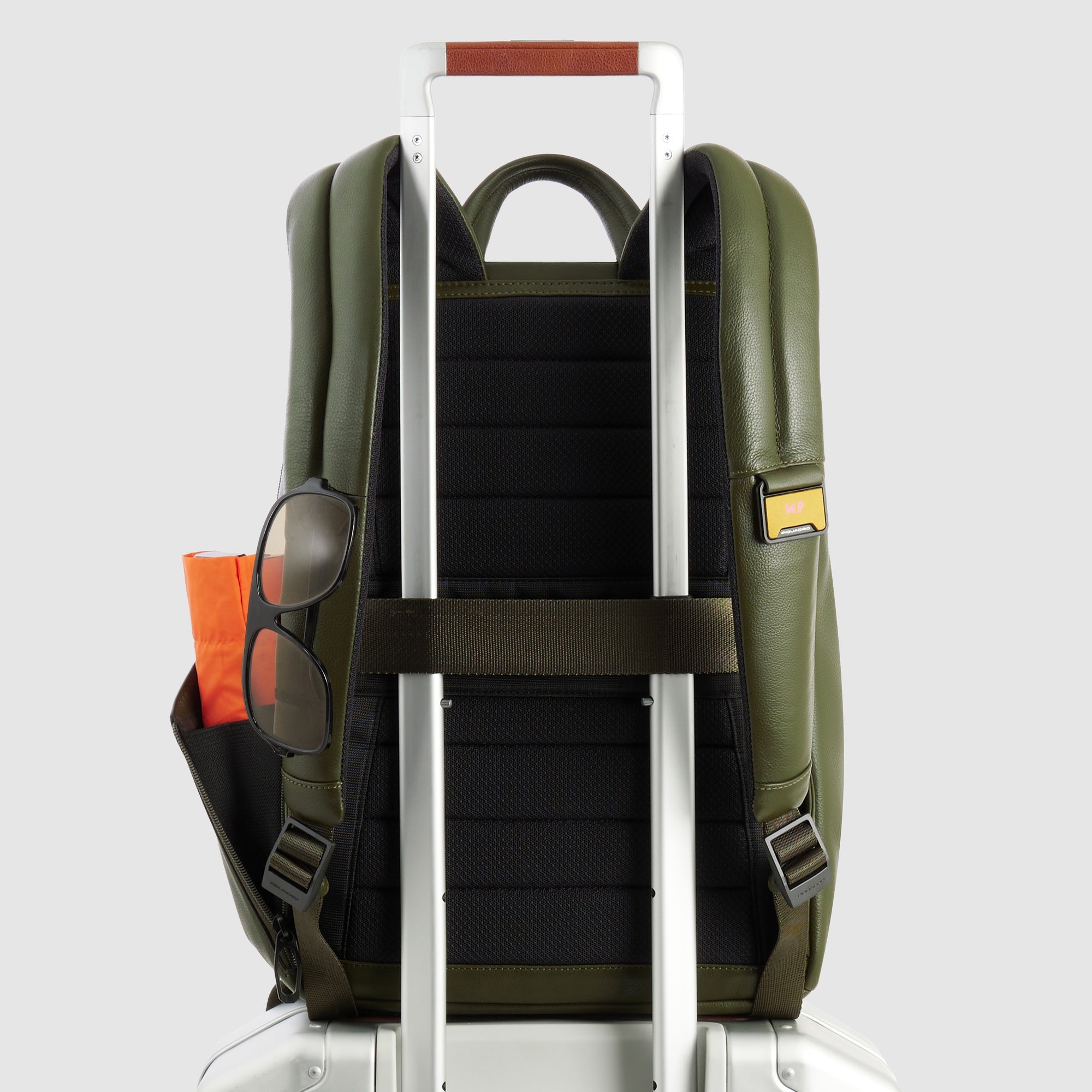 Leather laptop backpack with iPad® compartment, anti-theft system, glasses holder, CONNEQU 4.0 pocket, RFID and shock-absorbing protection