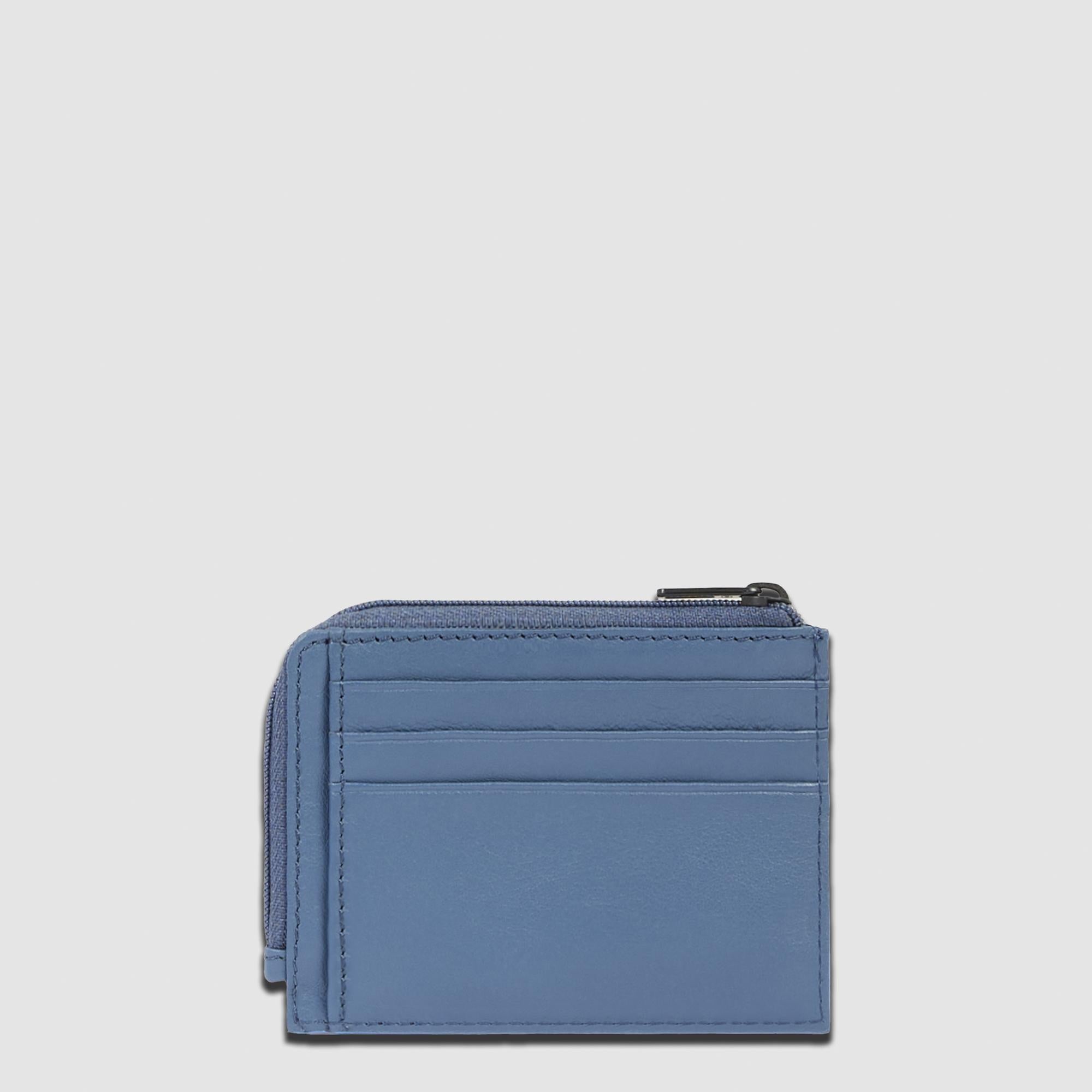 Zipped coin purse in leather with document holder, credit card slots and RFID protection