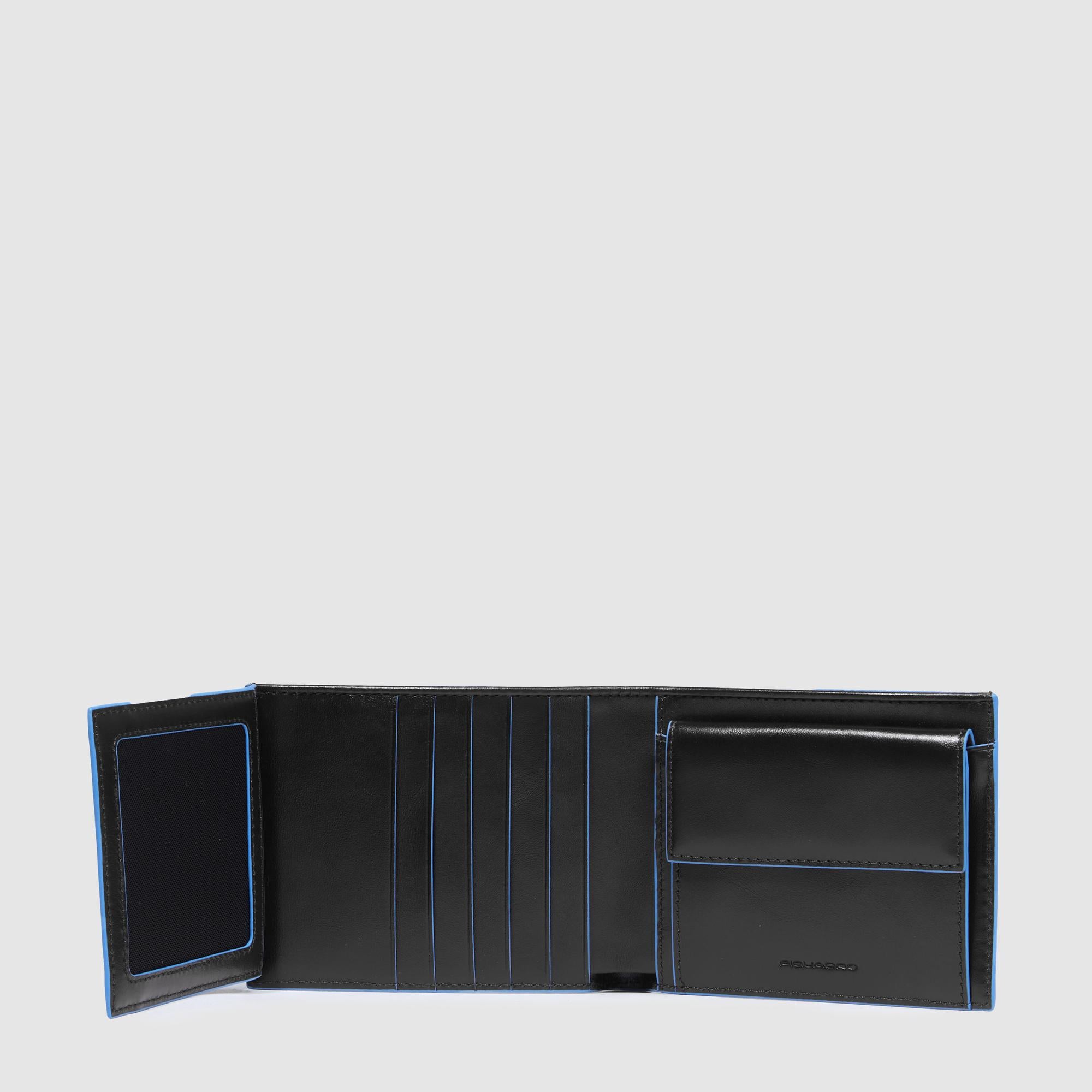 Men’s leather wallet with flip up ID window, coin pocket, credit card slots and RFID protection