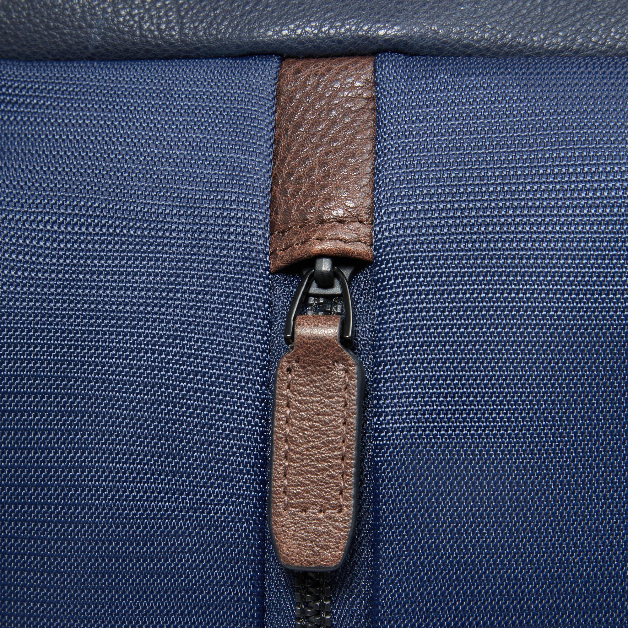 Travel backpack in recycled fabric and leather for laptop and iPad® with glasses holder, AirPods® pocket, RFID and shock absorbing protection