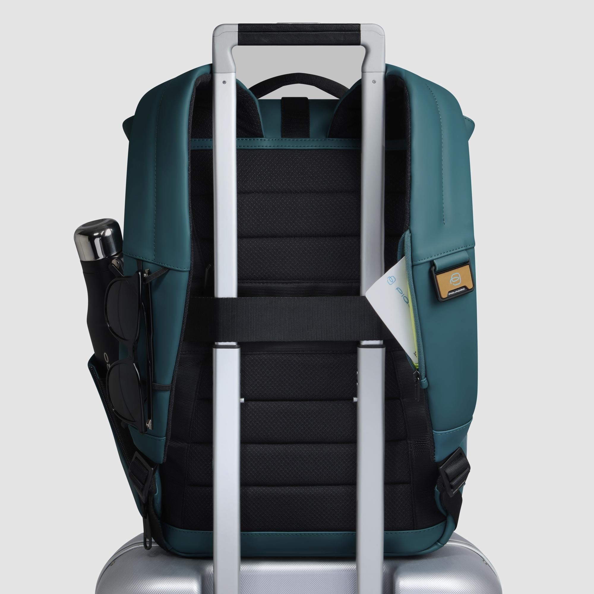 Laptop backpack in water resistant fabric with iPad compartment, loop for bike wearable tail light, bottle pocket, RFID and shock-absorbing protection