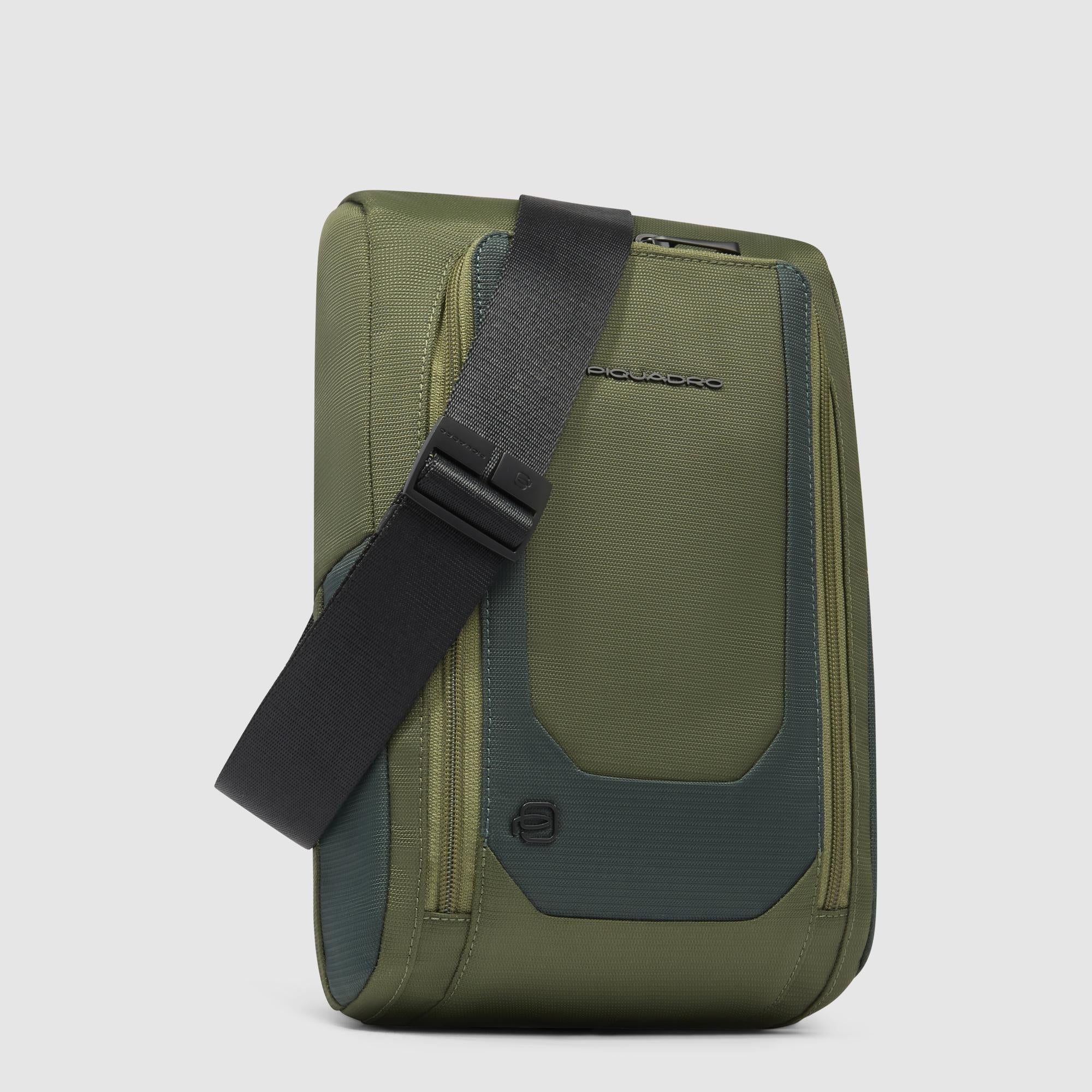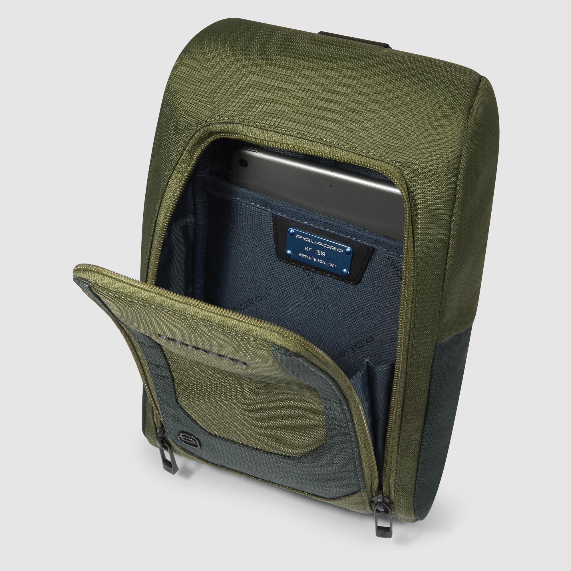 Sling bag in recycled fabric and leather for iPad®mini with RFID protection
