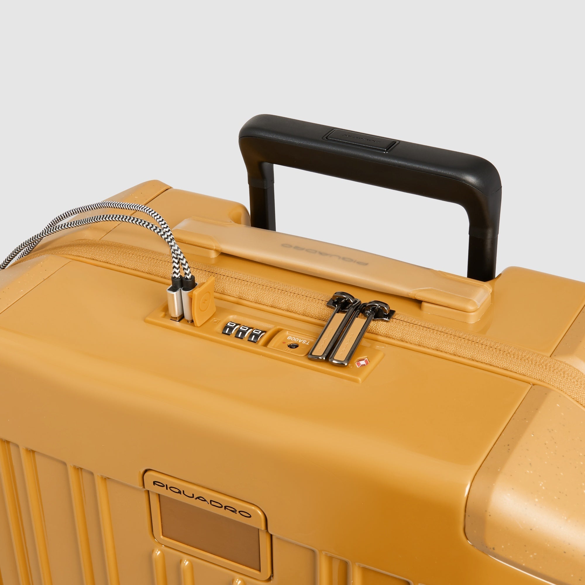 Piquadro's POP luggage collection is a riot of color and innovation. Available in white, blue, green, yellow and gray, they feature sliding and interchangeable wheels, which can also be purchased separately to add a touch of personality to your luggage. The suitcases also have corners that protect them from impacts. To make each item even more unique, POP suitcases can be personalized with your own initials (max 3 characters) by choosing the metal tag in your favorite color.