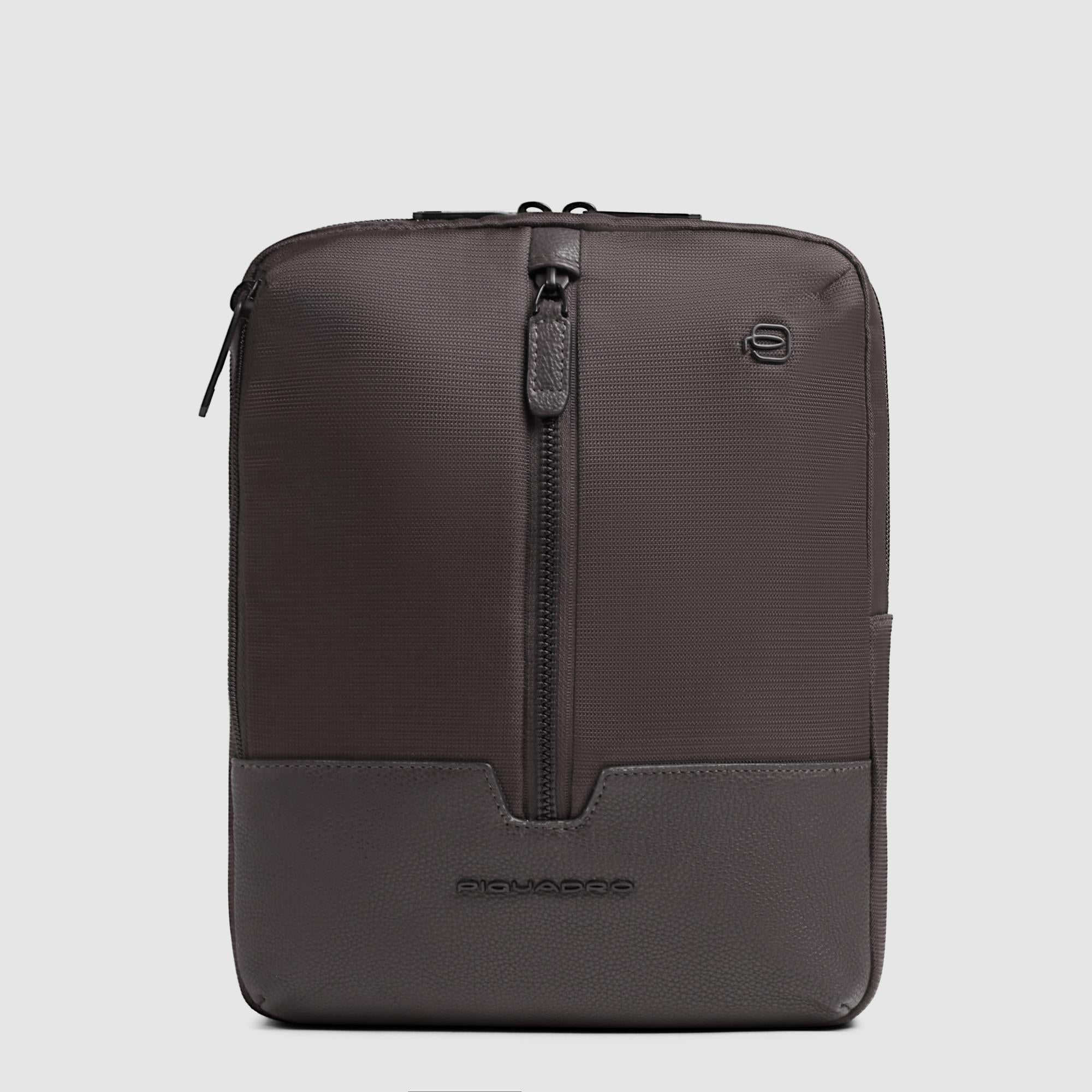 iPad® crossbody bag in recycled fabric and leather with pocket for AirPods®