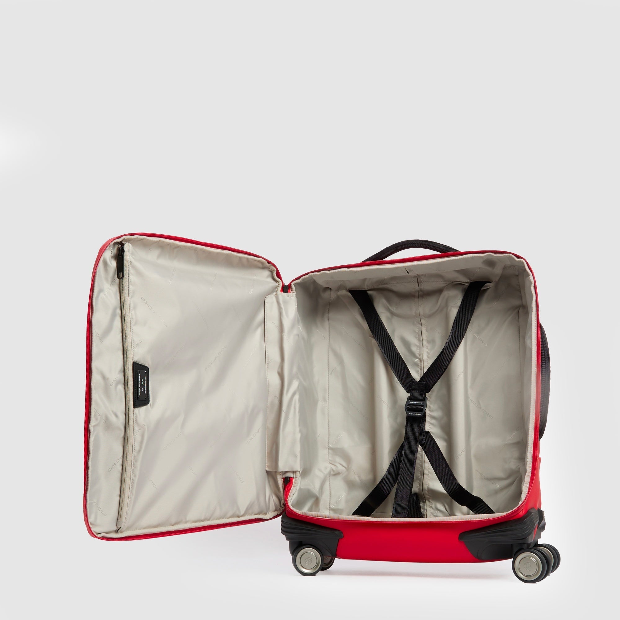 Piquadro x Ducati" limited-edition slim, 4 wheel carry-on in rubberized, water resistant textile with TSA lock