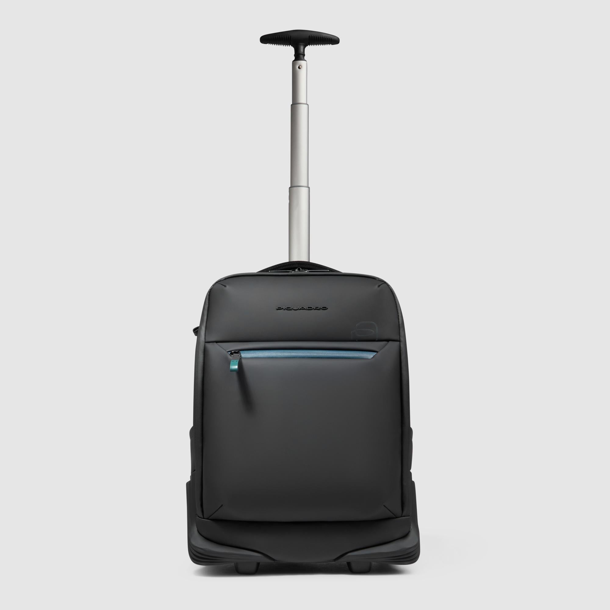 Convertible to backpack underseater carry-on in rubberized, water resistant fabric with laptop compartment and schock absorbing protection