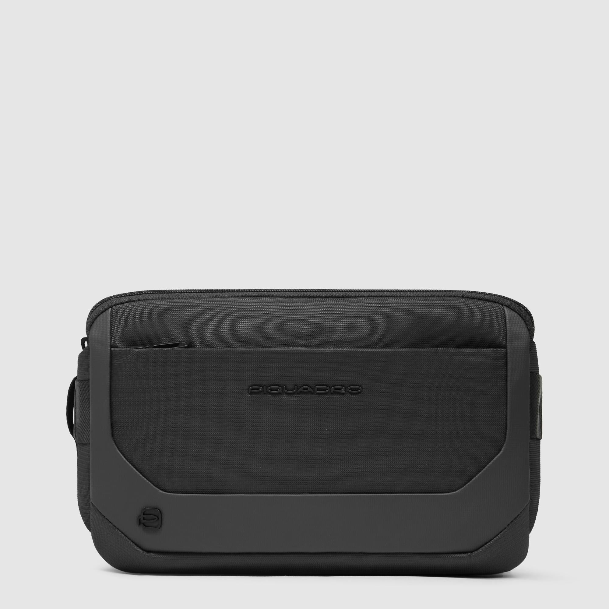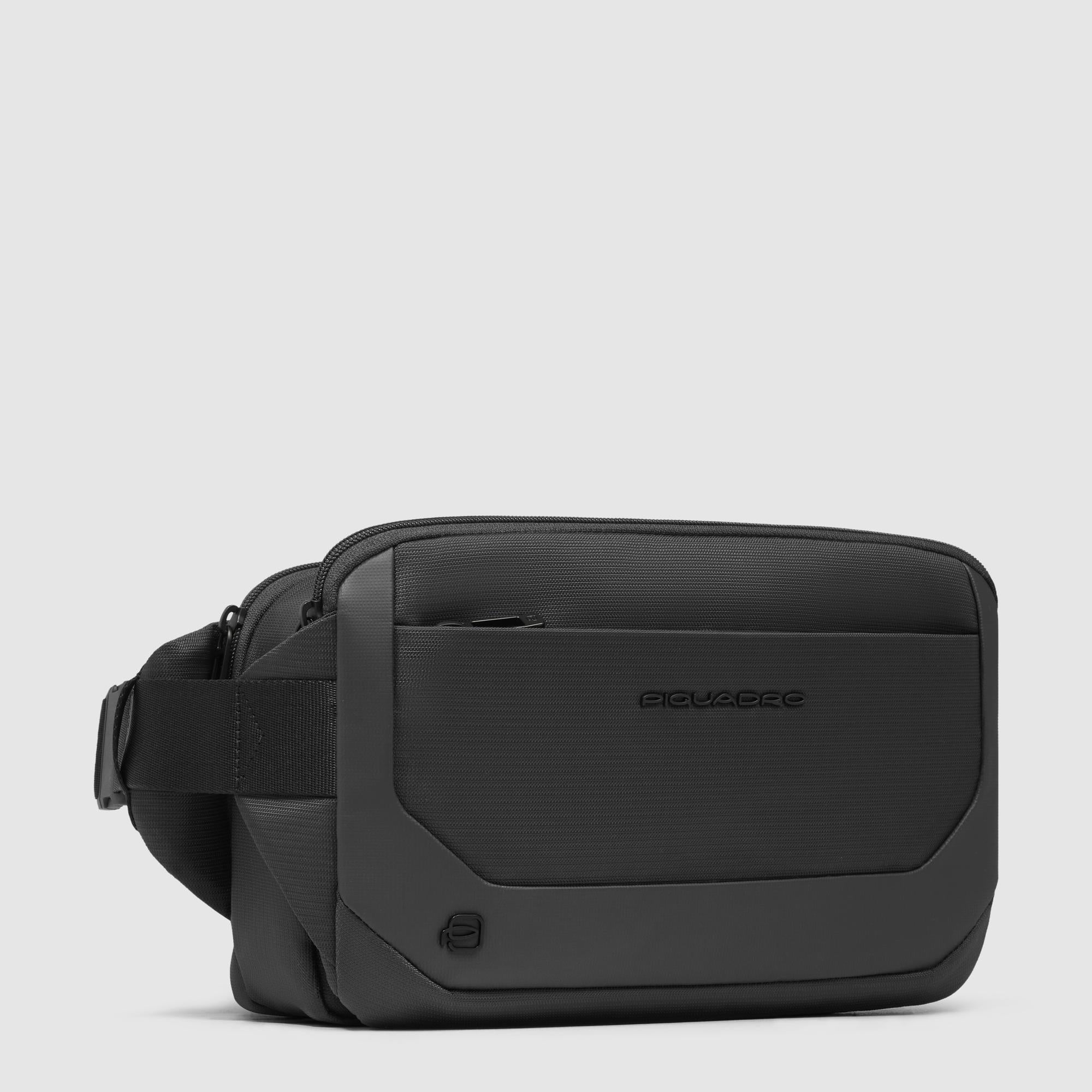 Covertible to sling bag, expandable bum bag in recycled fabric and leather with bottle pocket