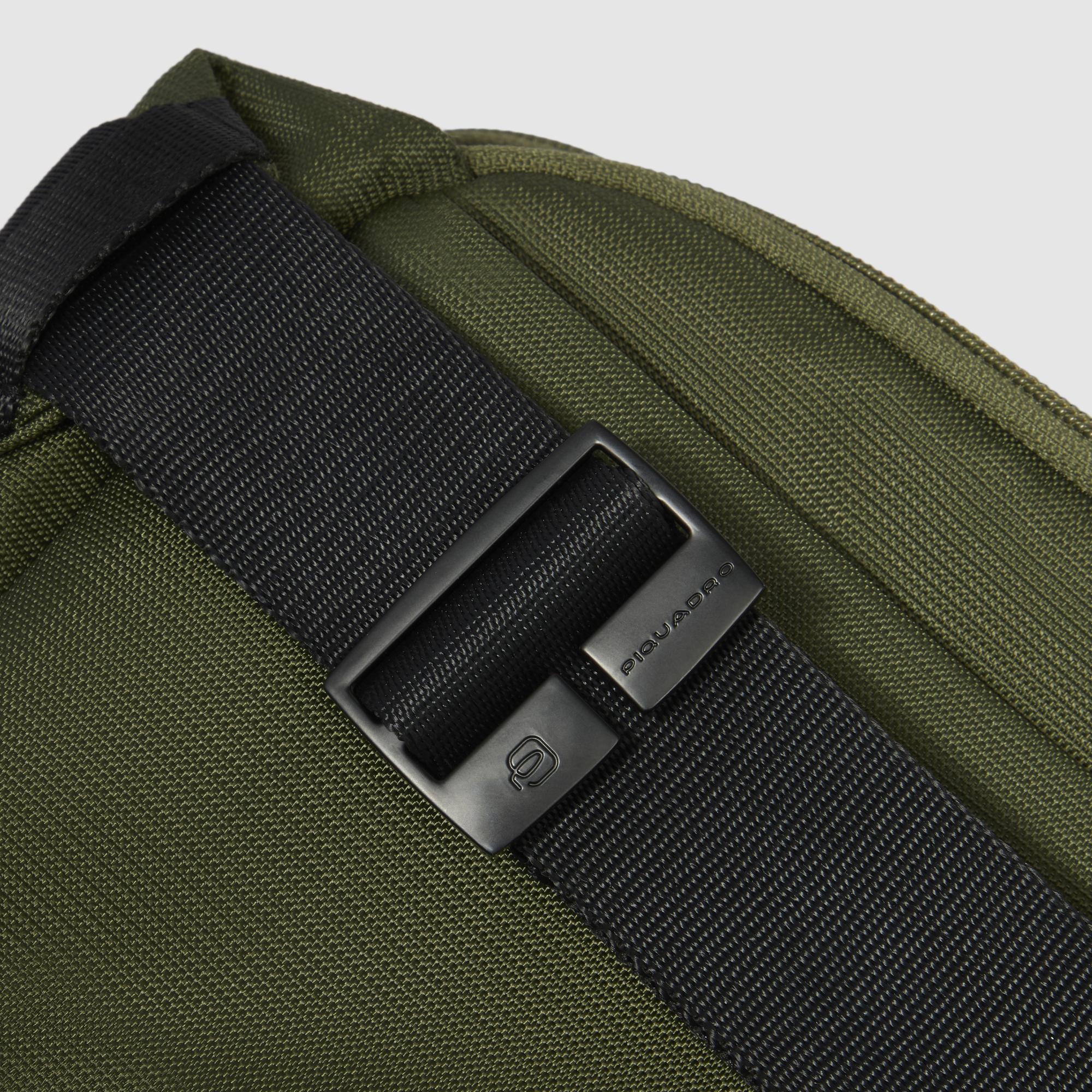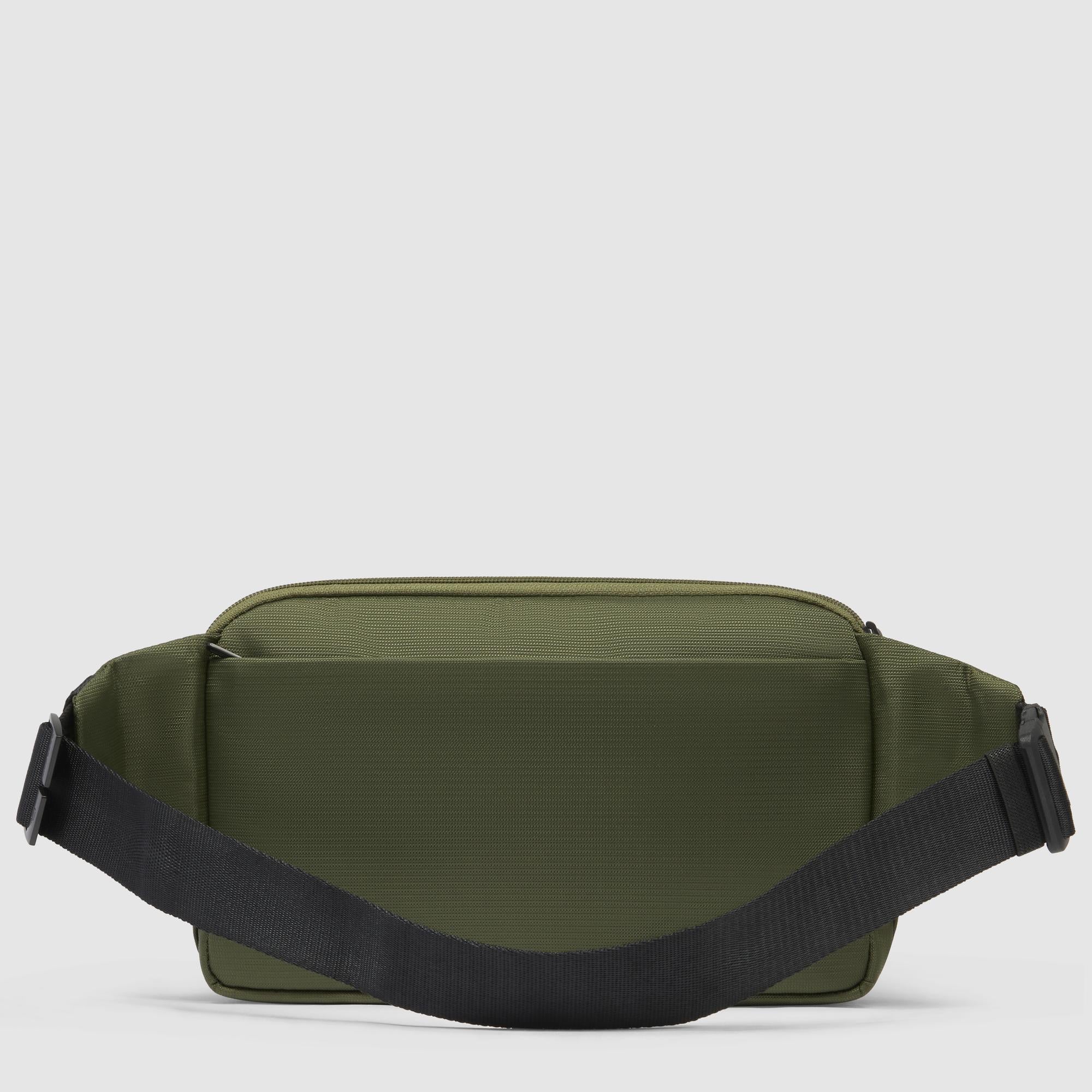 Covertible to sling bag, expandable bum bag in recycled fabric and leather with bottle pocket