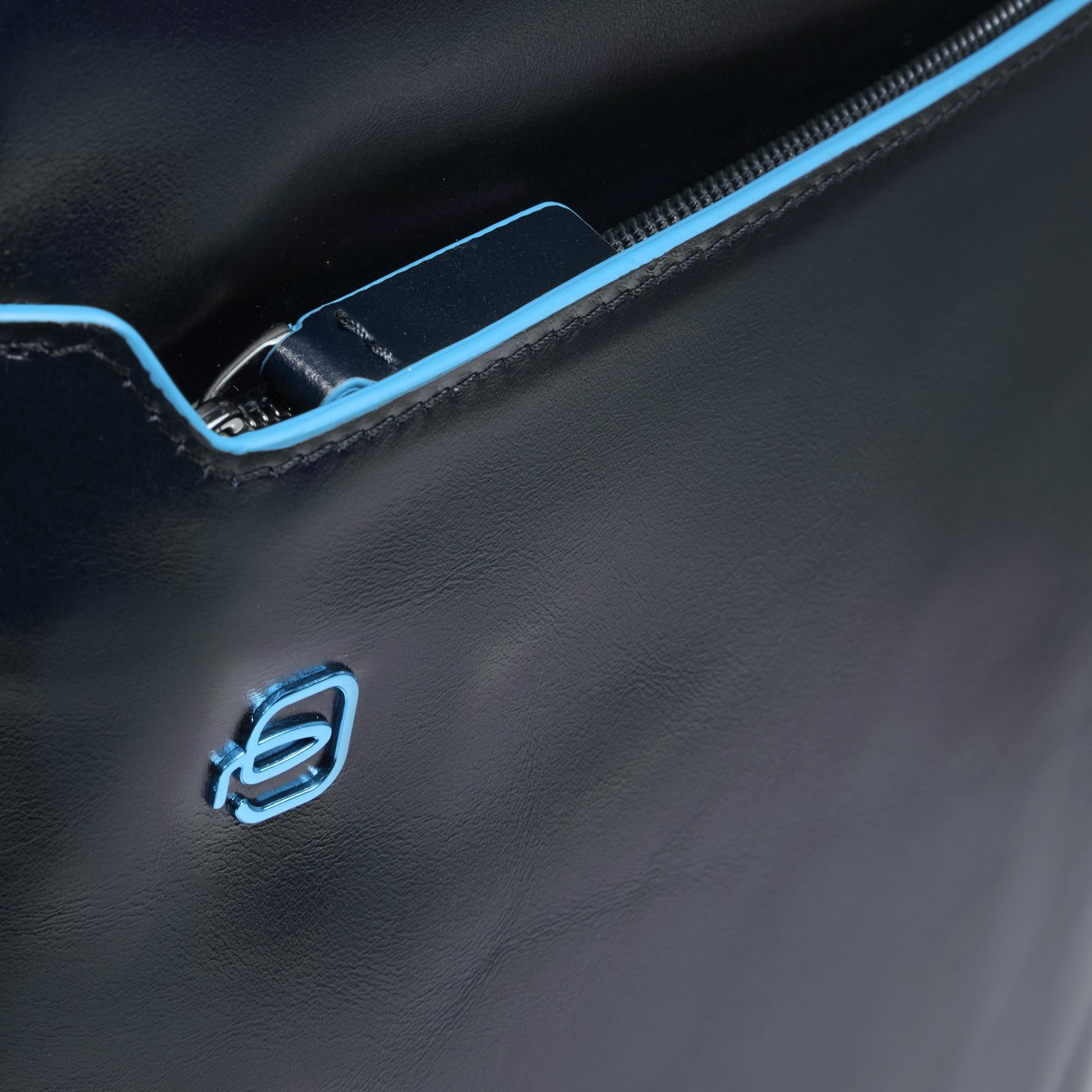 The Blue Square collection is made of tanned calfskin. This traditional tanning method maintains the beauty of the leather over the years. The raw cut edges that are hand-painted in blue enliven the business character of the collection and are a highly recognisable distinctive element.