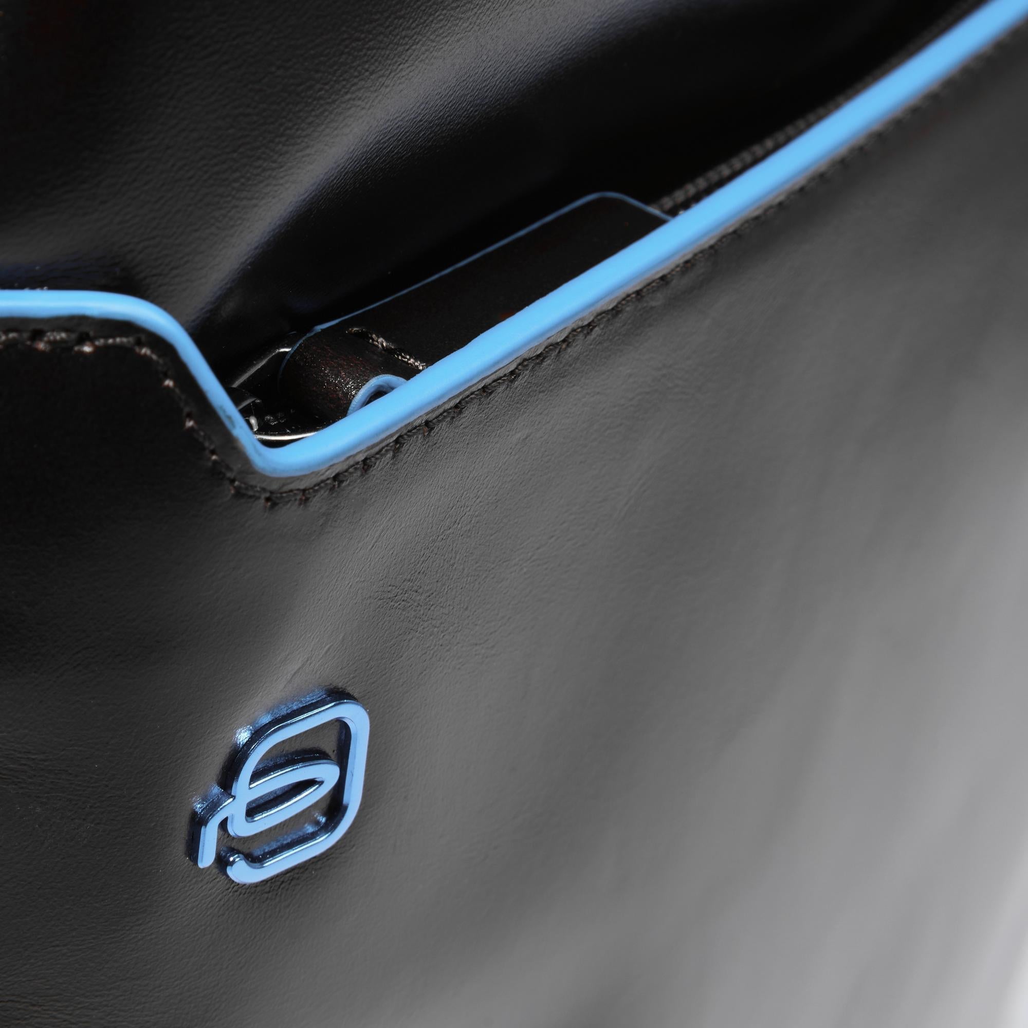 The Blue Square collection is made of tanned calfskin. This traditional tanning method maintains the beauty of the leather over the years. The raw cut edges that are hand-painted in blue enliven the business character of the collection and are a highly recognisable distinctive element.