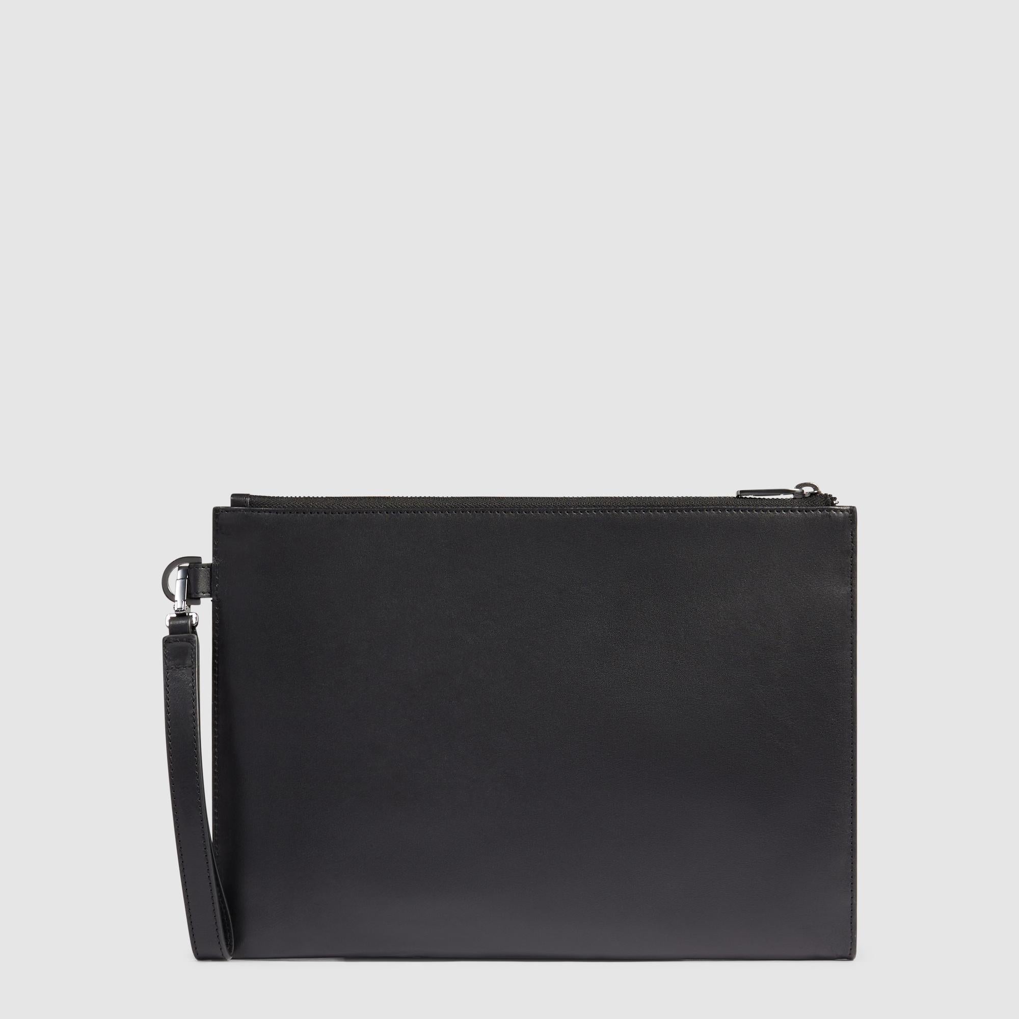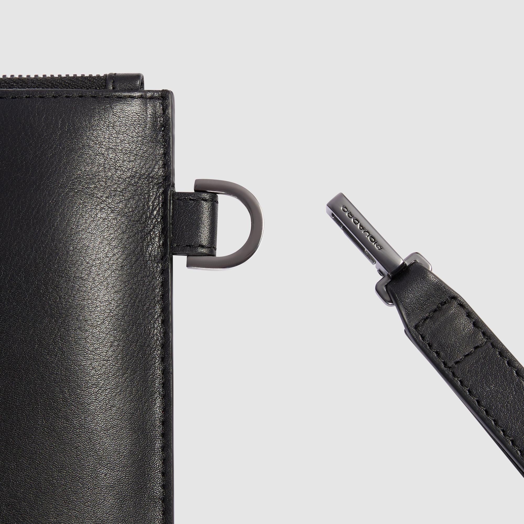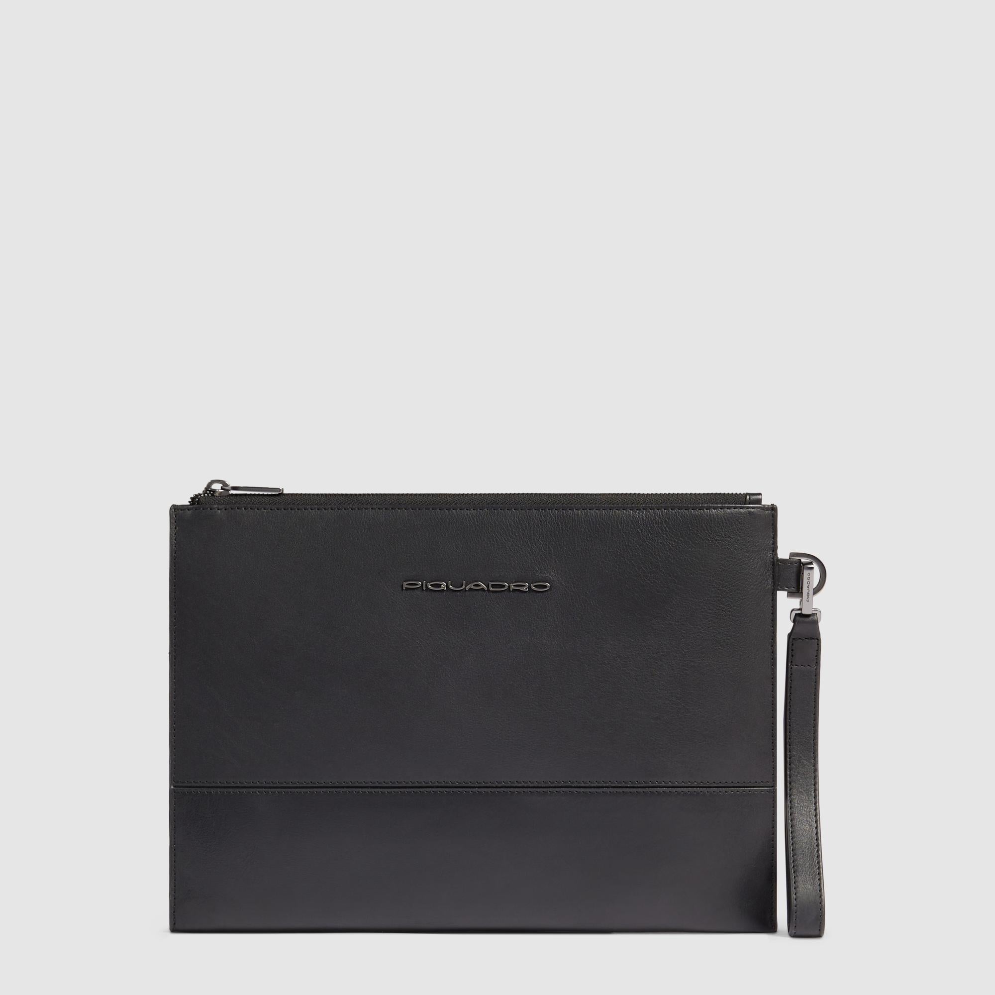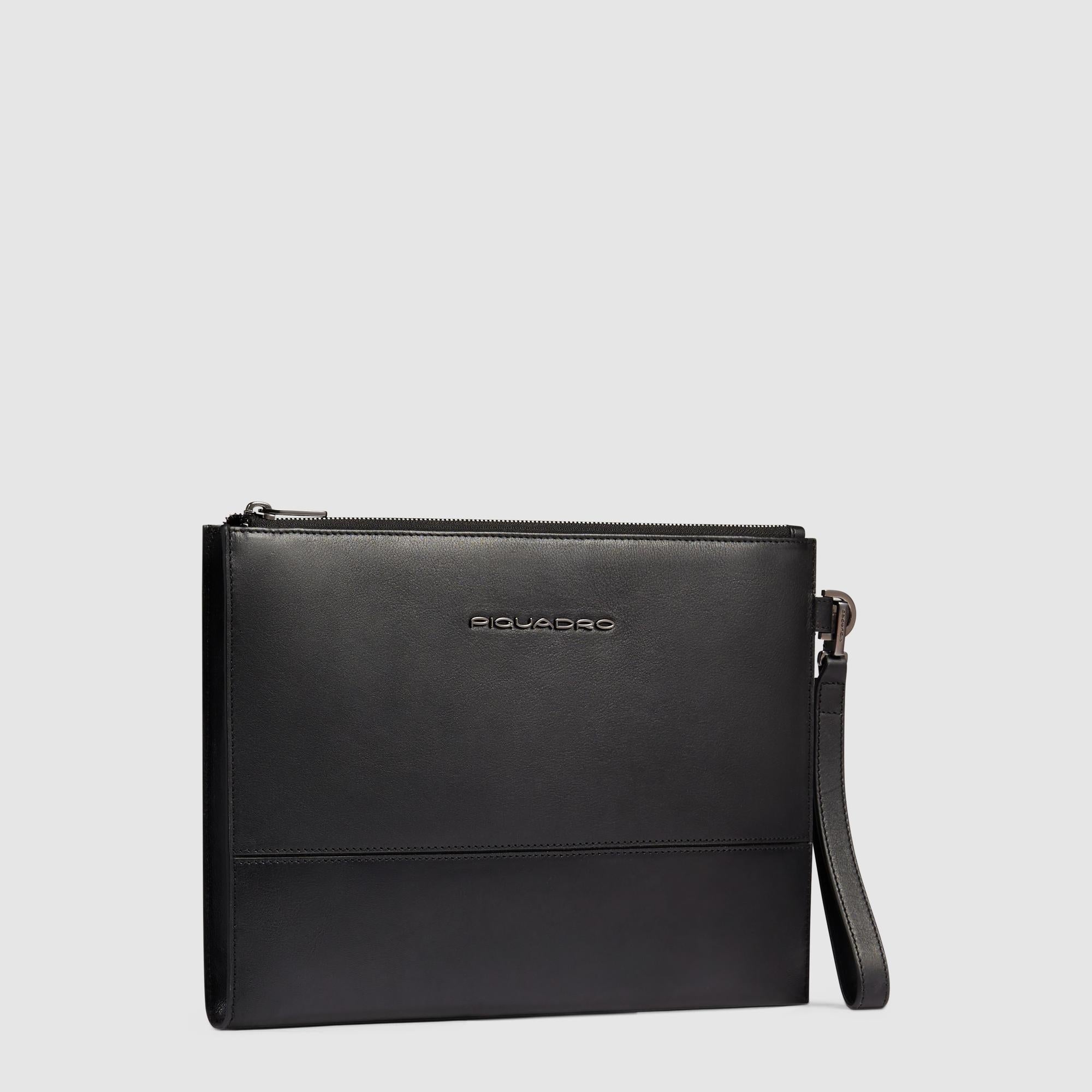 Leather iPad®Pro 11" clutch with pockets for AirPods® and Piquadro Smart Tracker