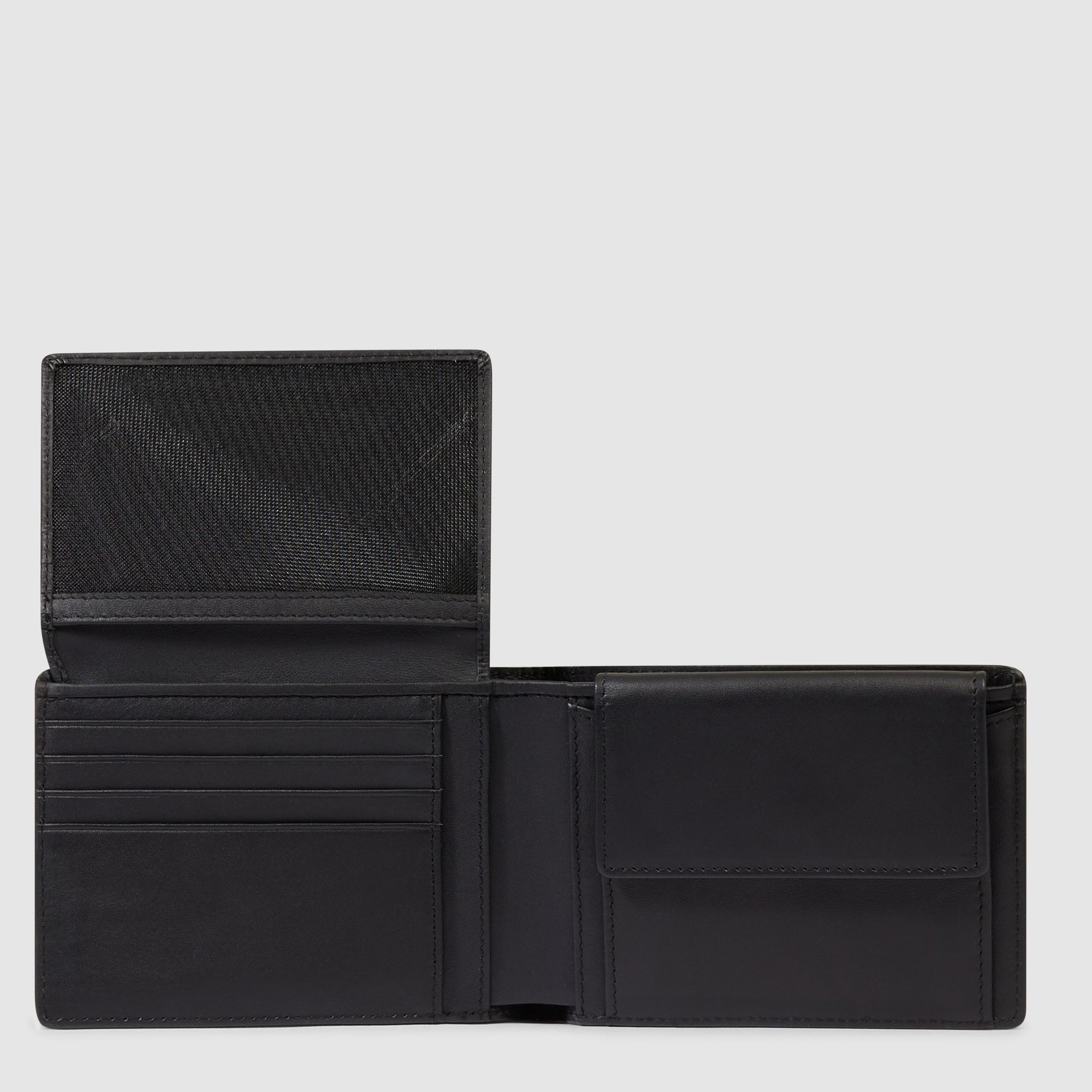 Men’s leather wallet with flip up ID window, coin pocket, credit card slots and RFID protection