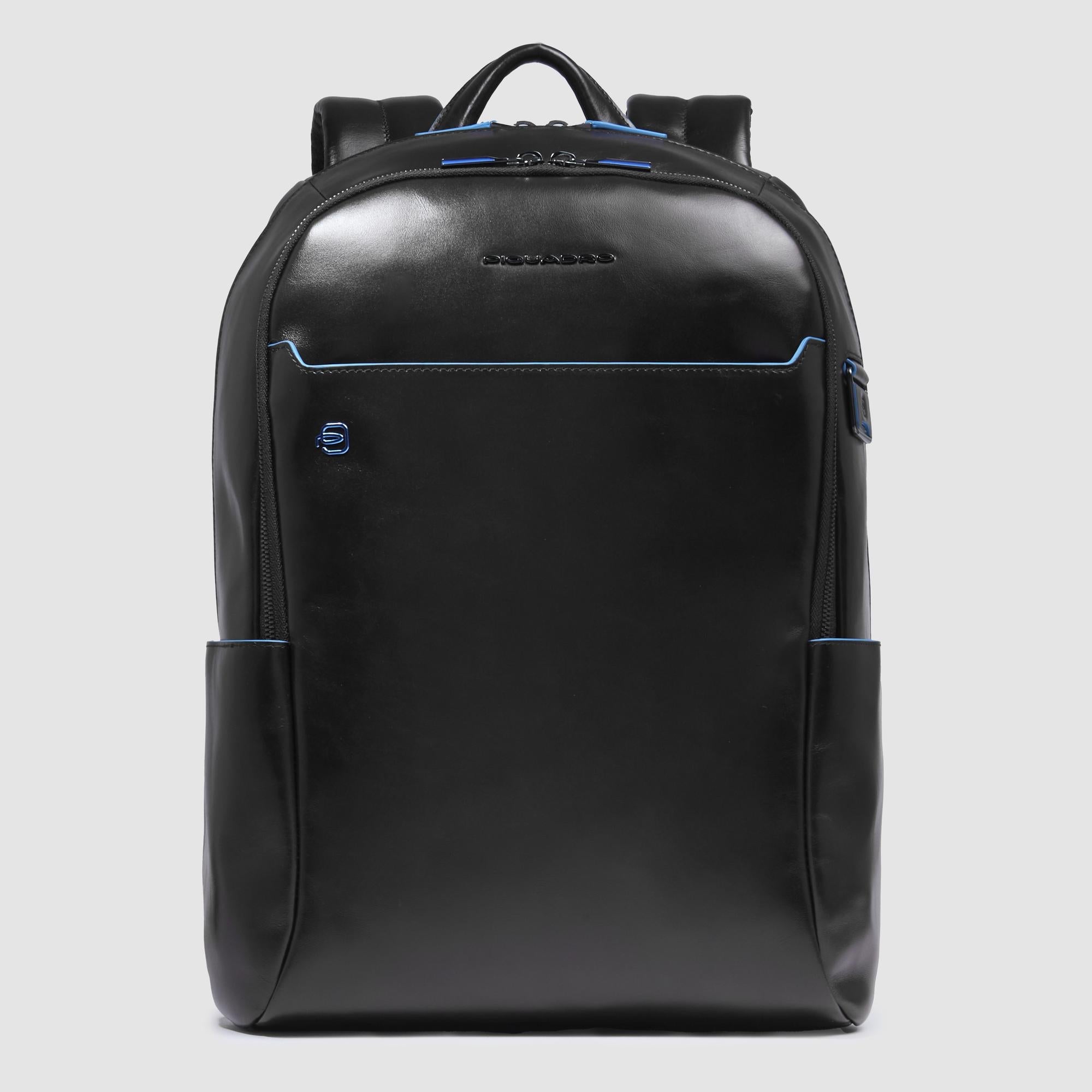 Personalizable laptop backpack in leather with iPad® compartment, bottle pocket, RFID and shock-absorbing protection