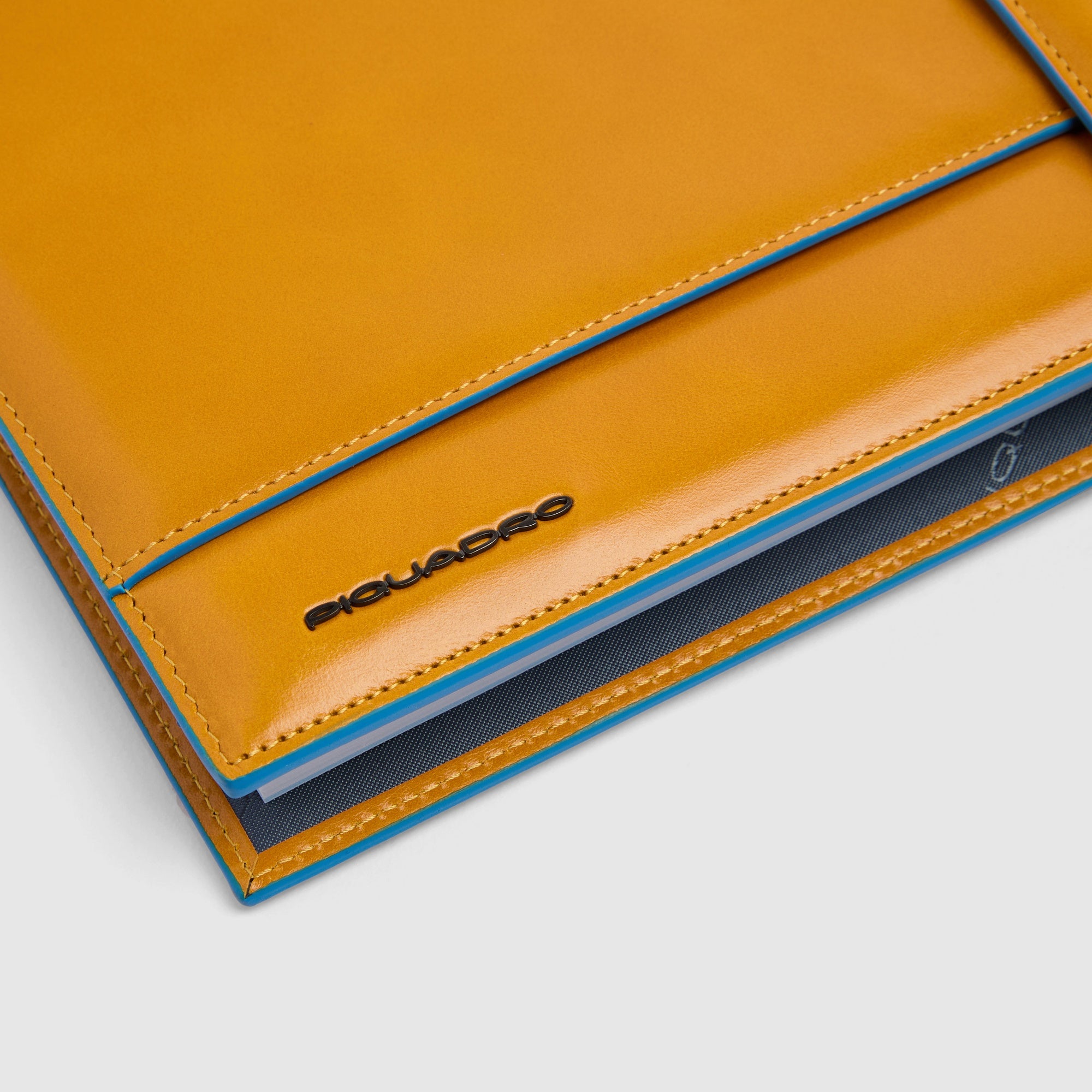The Blue Square collection is made of tanned calfskin. This traditional tanning method maintains the beauty of the leather over the years. The raw cut edges that are hand-painted in blue enliven the business character of the collection and are a highly recognisable distinctive element.