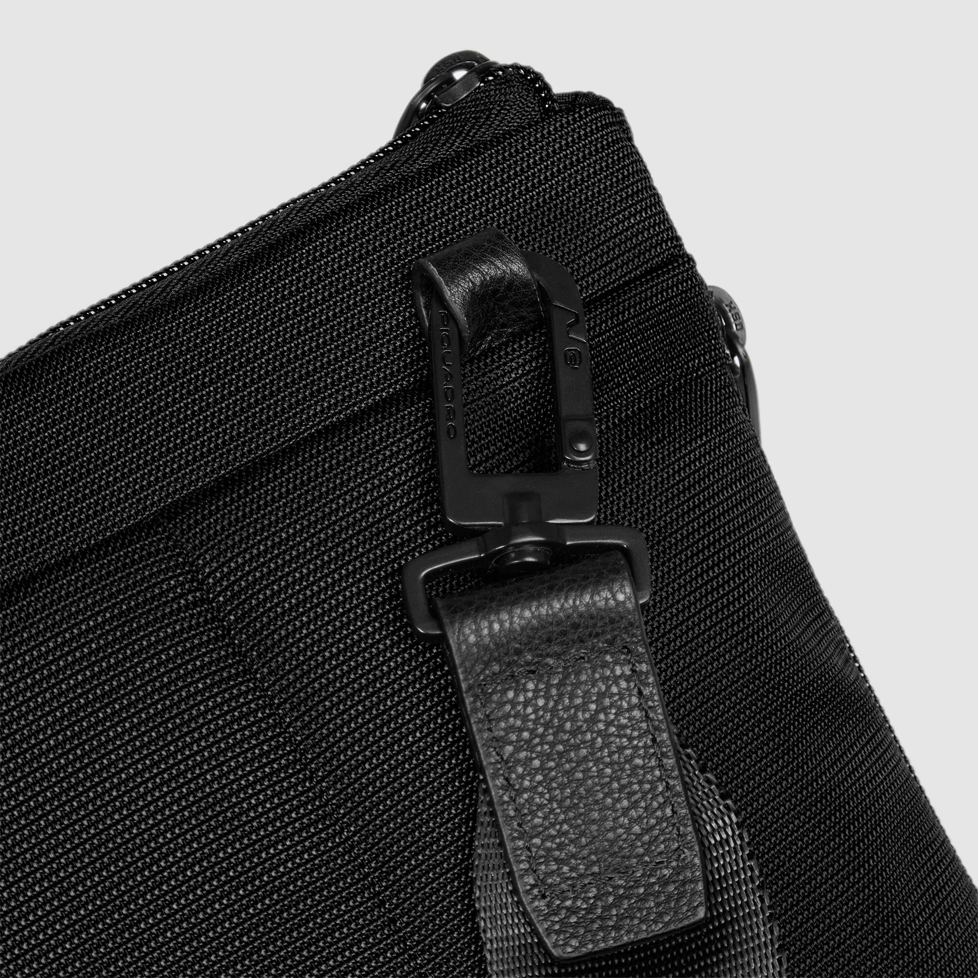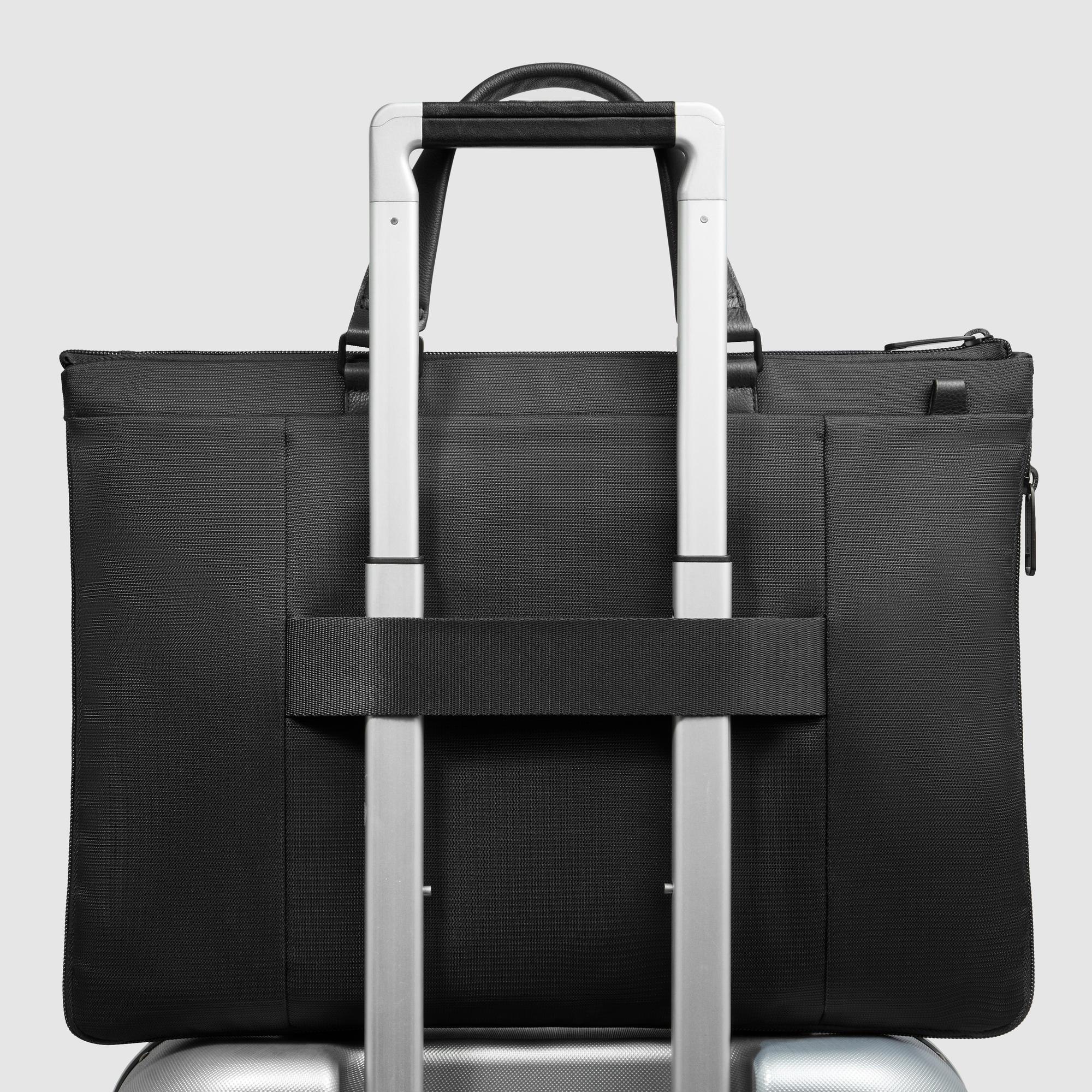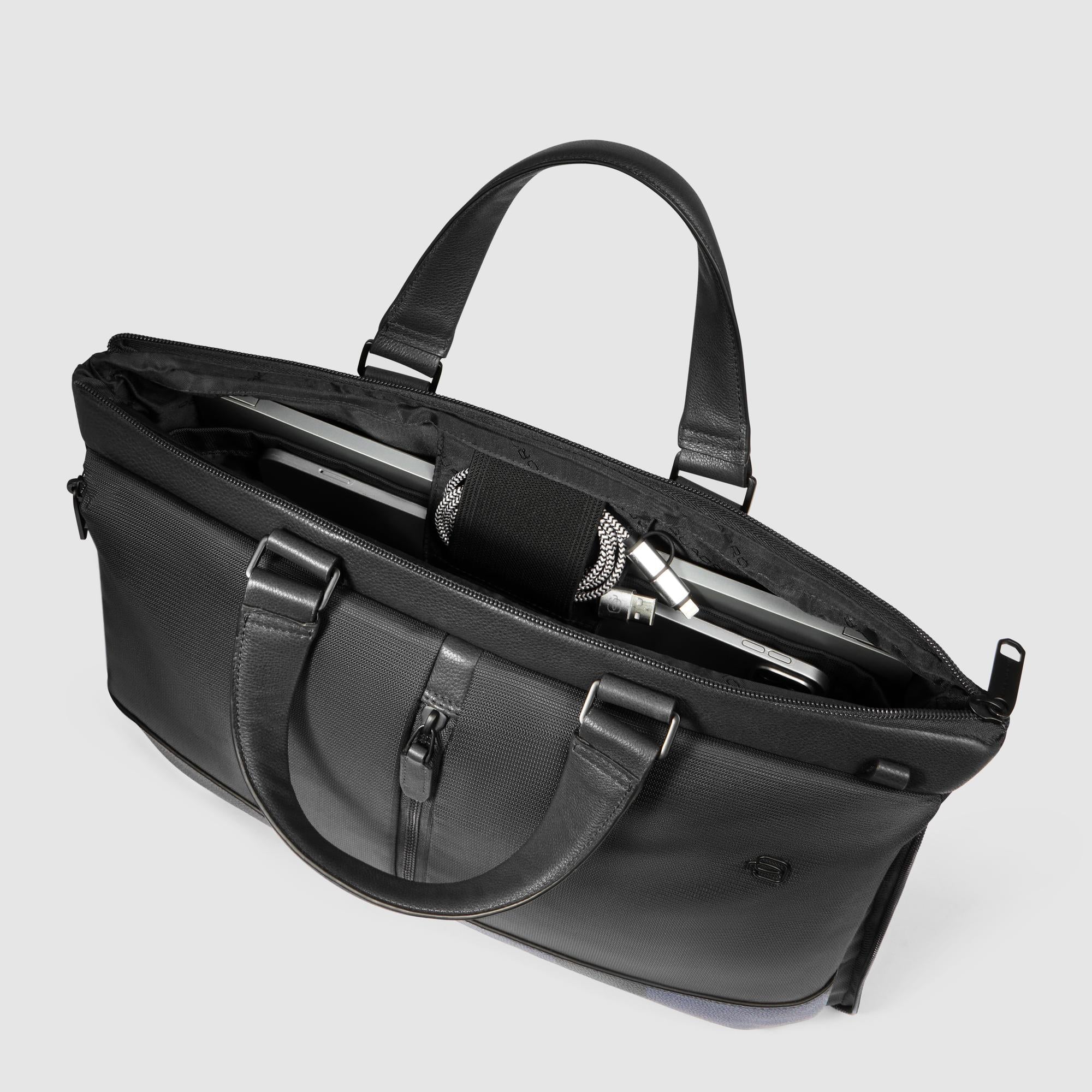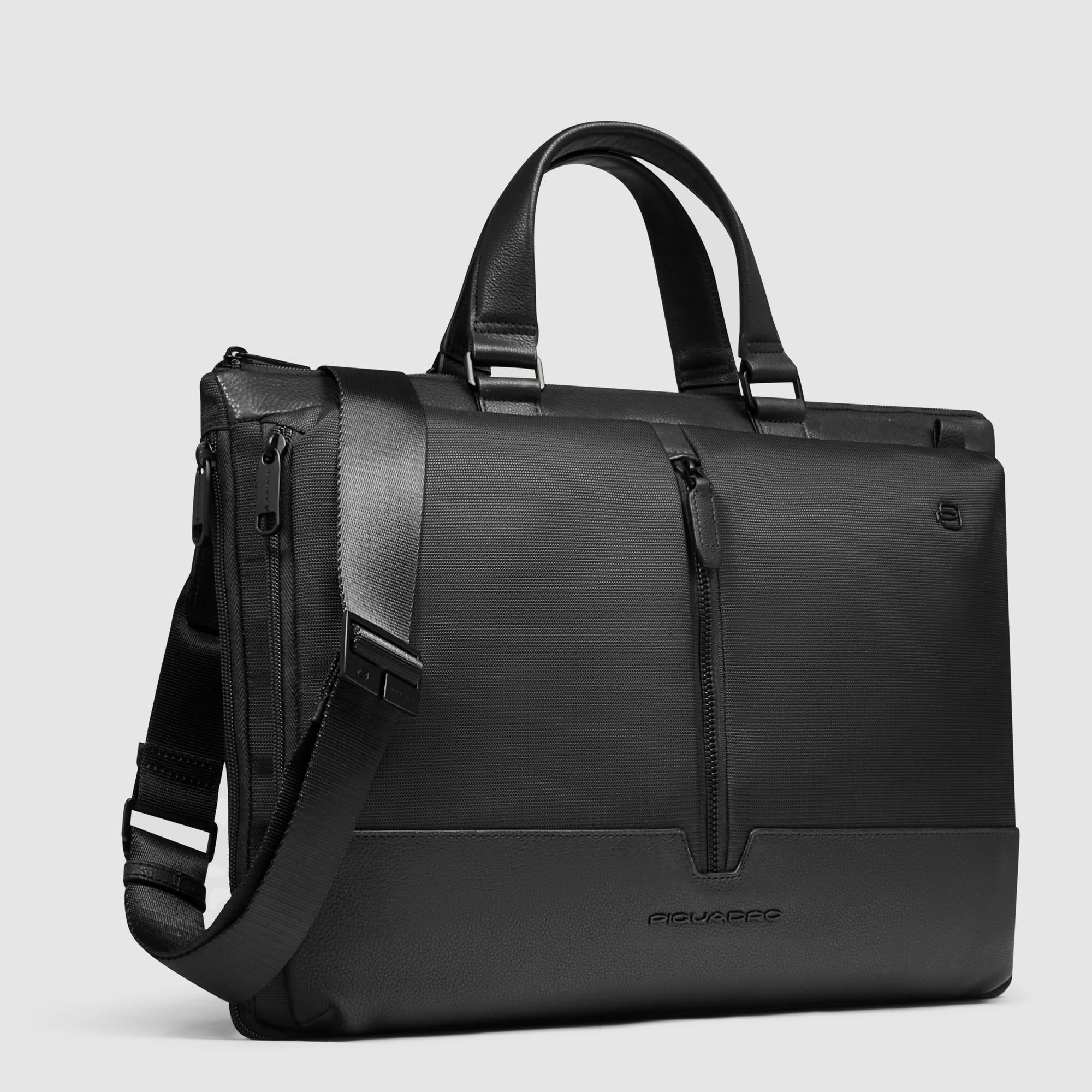 Expandable laptop bag in recycled fabric and leather with iPad® compartment, shock-absorbing protection and pocket for AirPods®