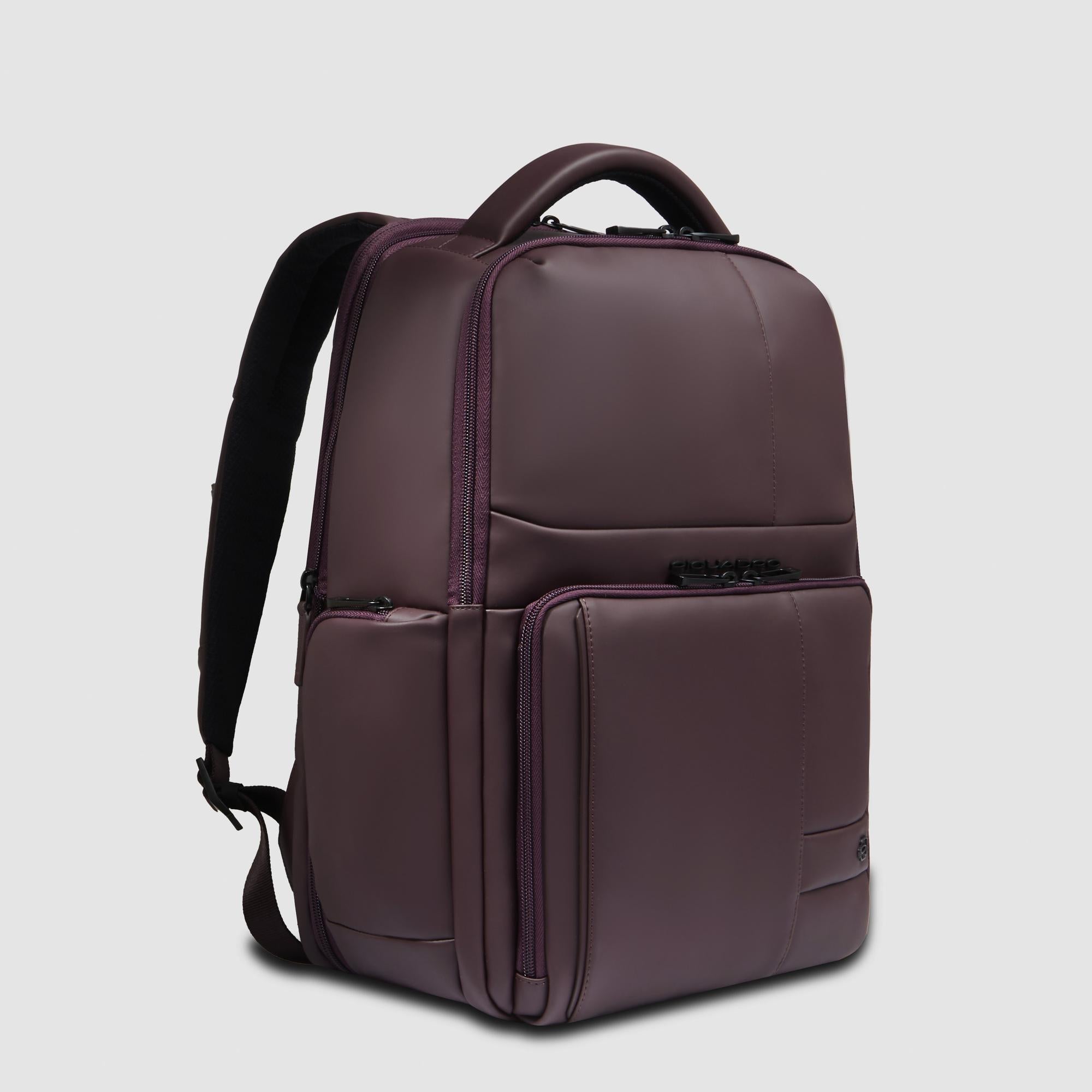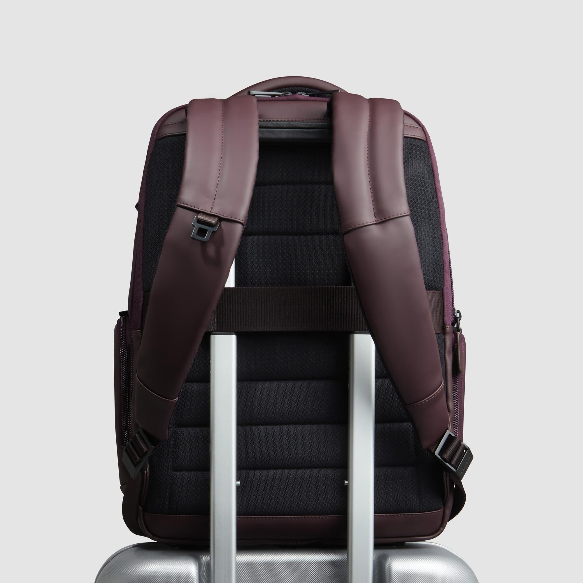Expandable, laptop and iPad® fast-check backpack in rubberized, water resistant fabric with RFID and shock absorbing protection
