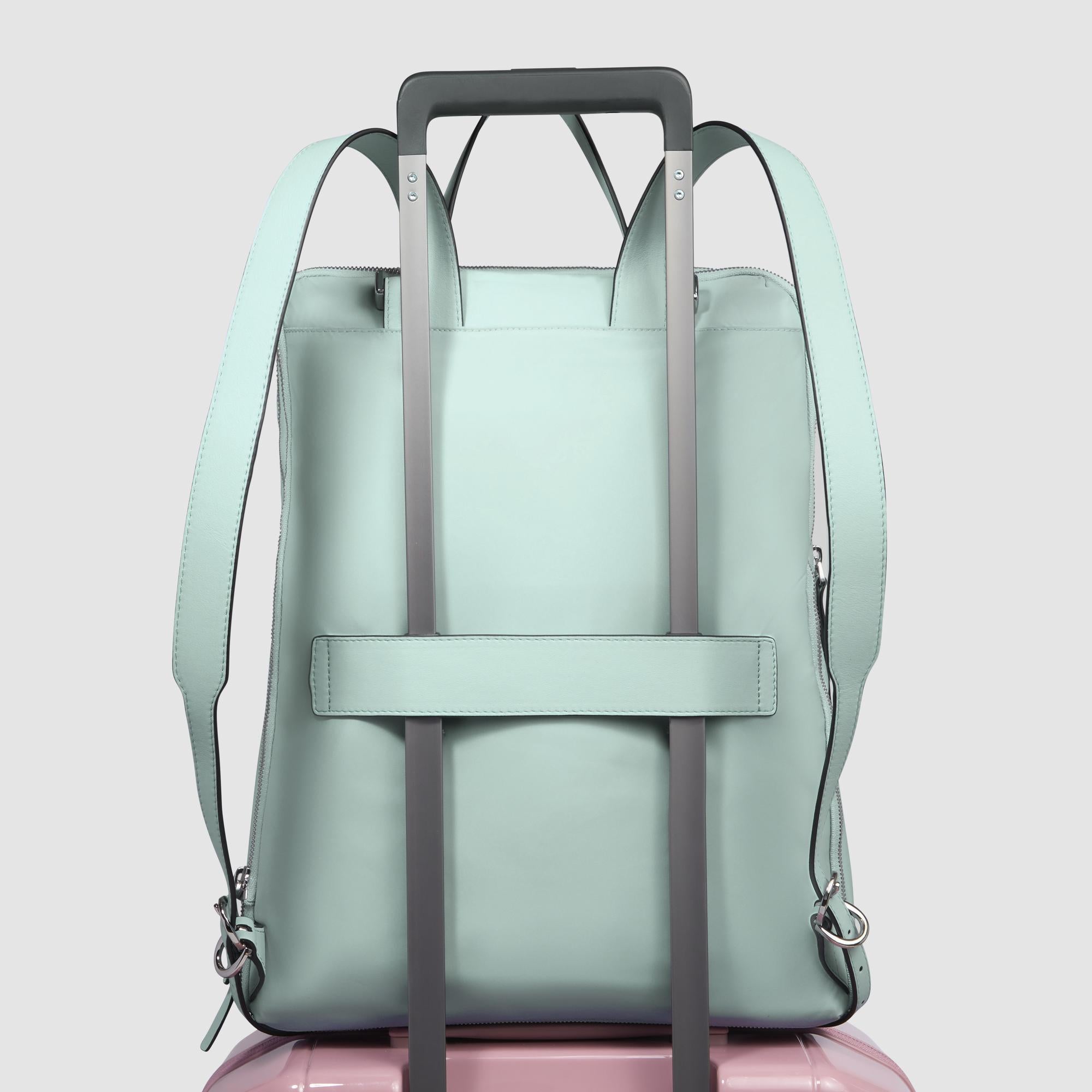 Mochila mujer para portátil e iPad® en tejido reciclado y piel con protecciones antichoque y RFID, expansible