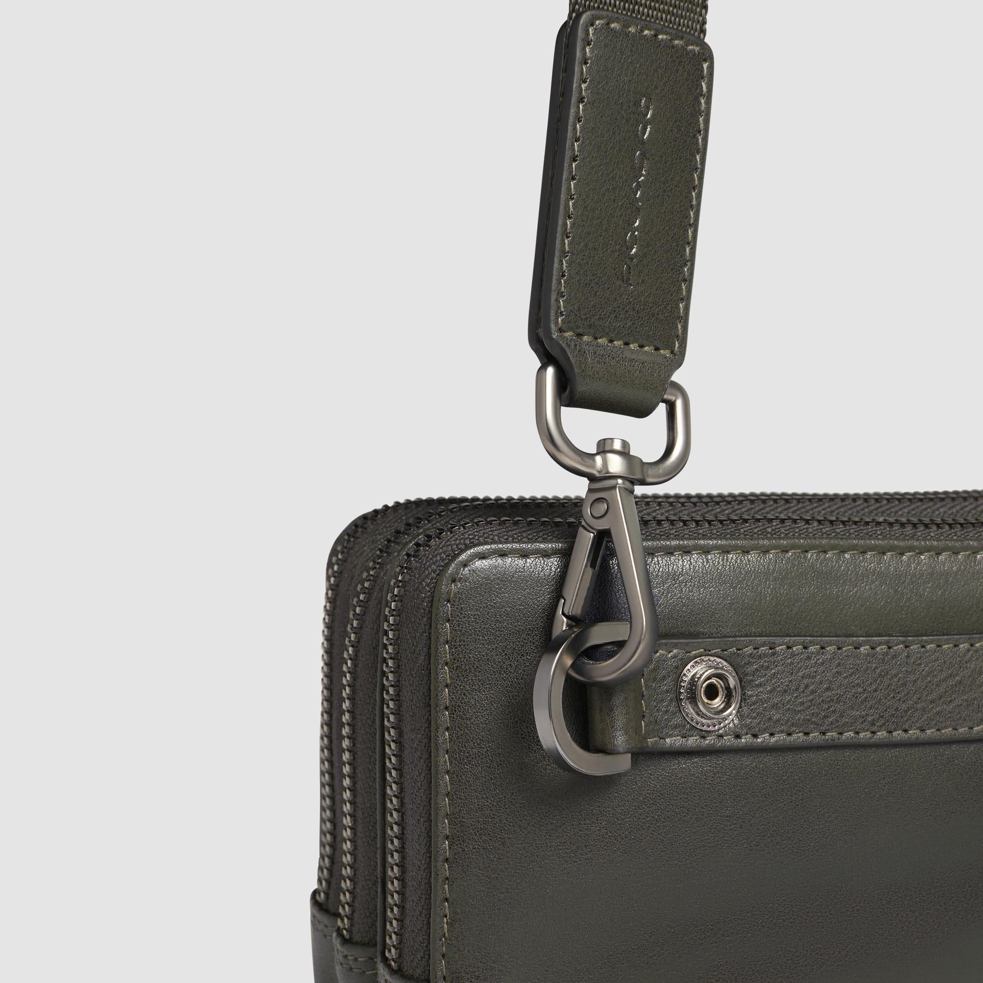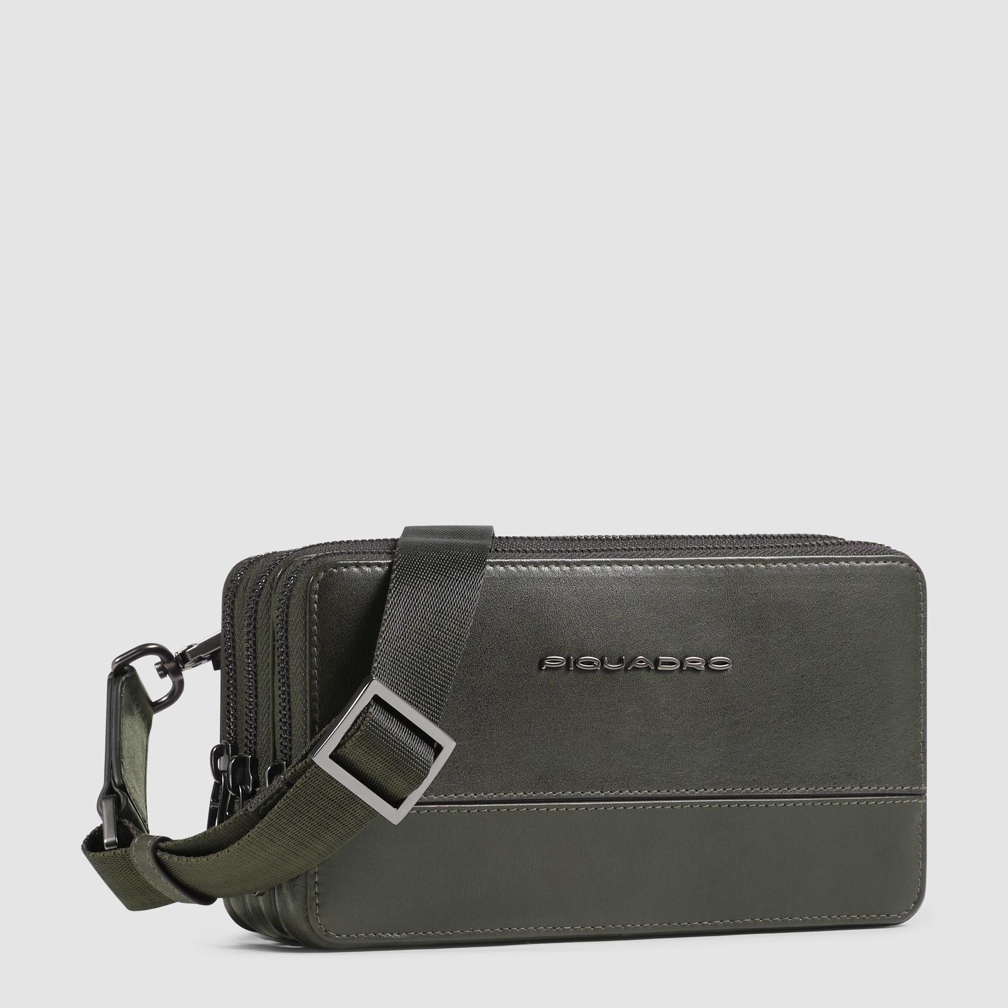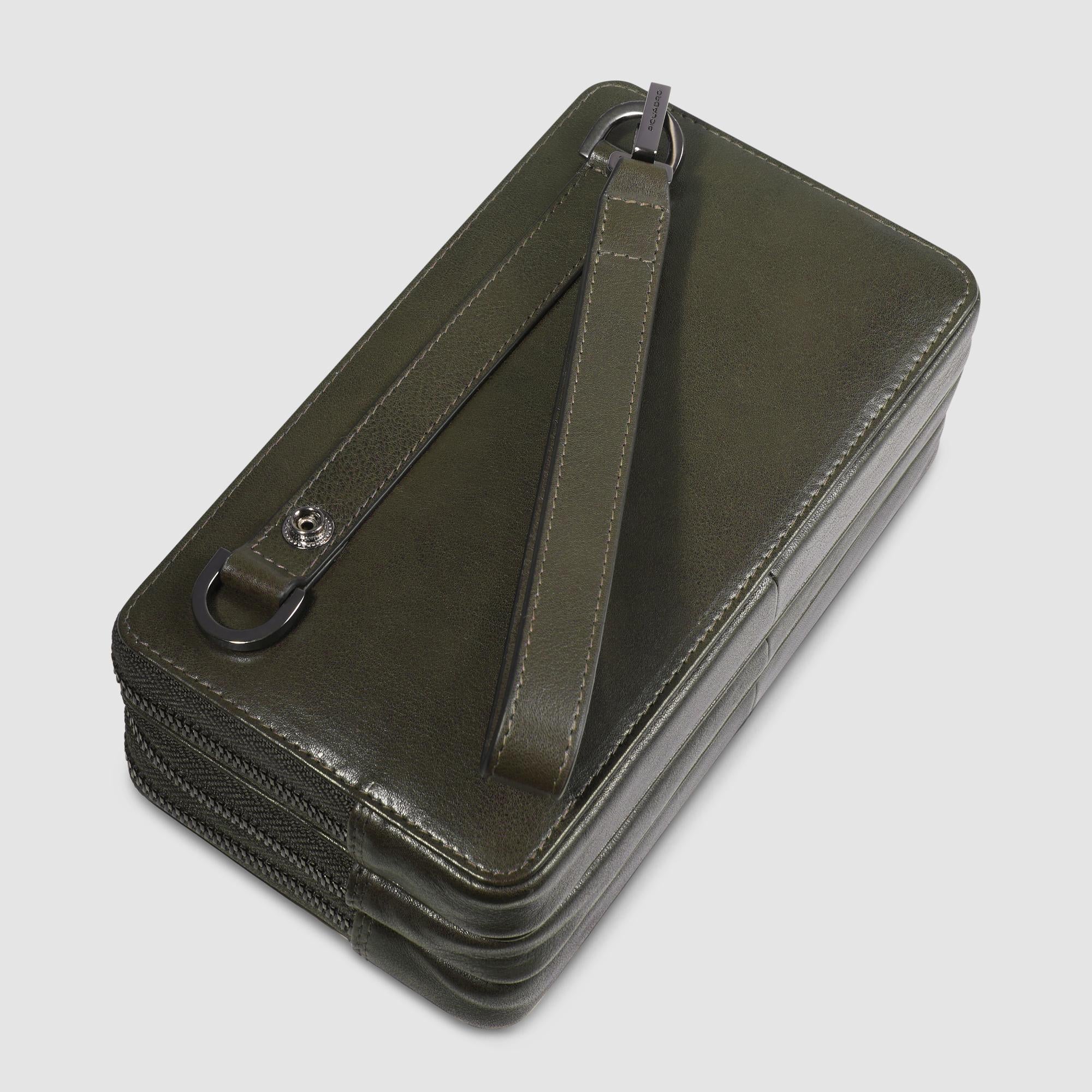 Bolso de mano hombre de piel de tres fuelles con correa desmontable para la muñeca y protección RFID