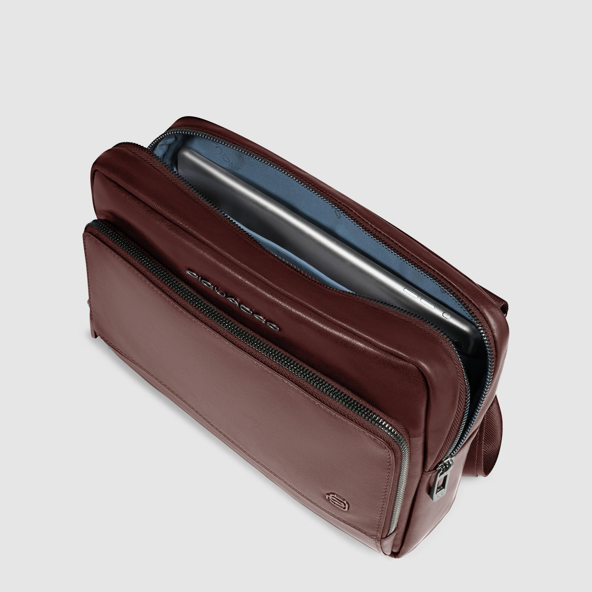 Sac bandoulière homme pour iPad® en cuir avec poche pour Piquadro Smart Tracker protection RFID