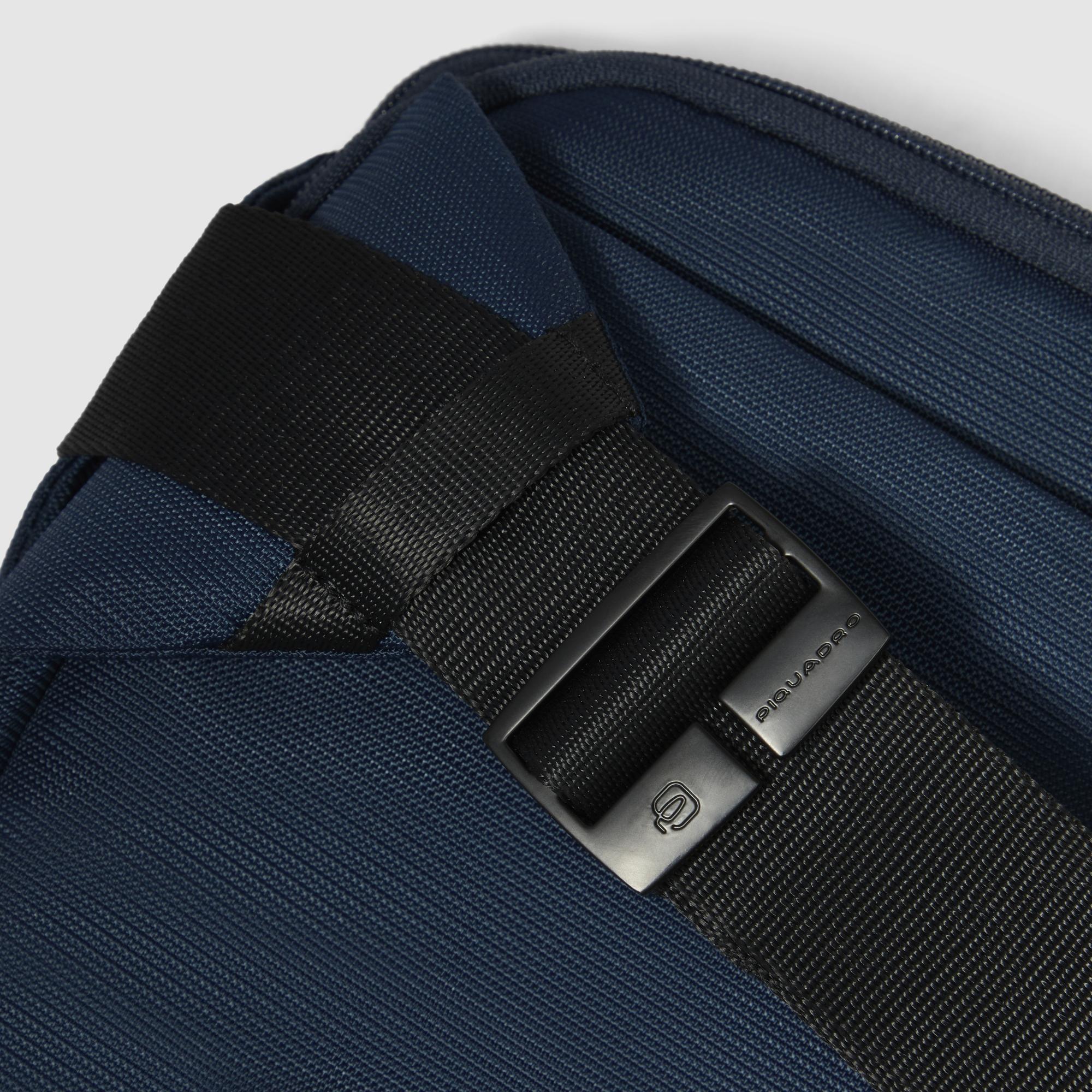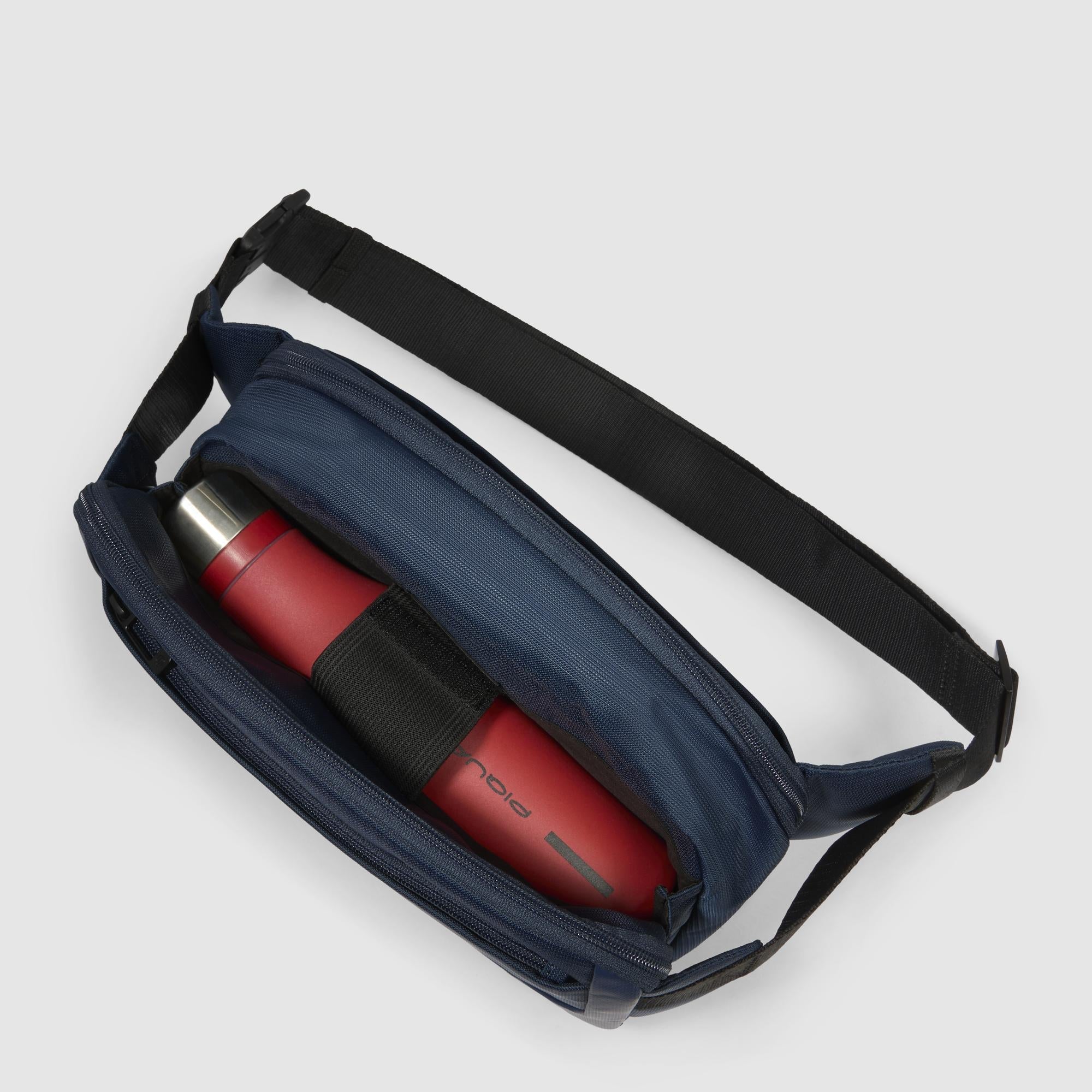 Marsupio uomo espandibile in tessuto riciclato e pelle con portabilità a monospalla e porta bottiglia