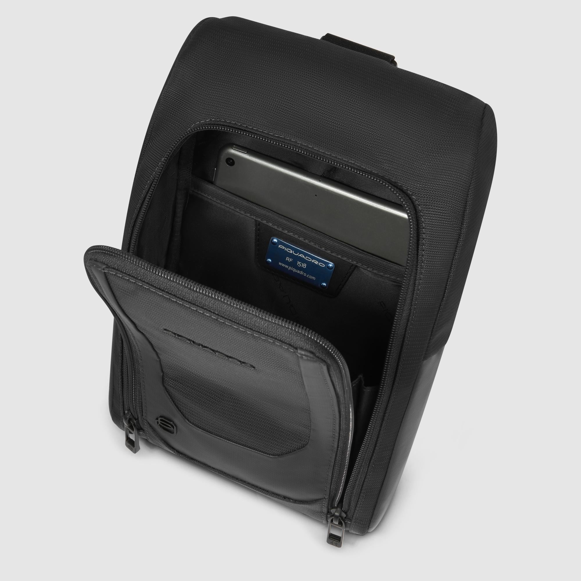 Zaino monospalla uomo porta iPad®mini in tessuto riciclato e pelle con protezione RFID