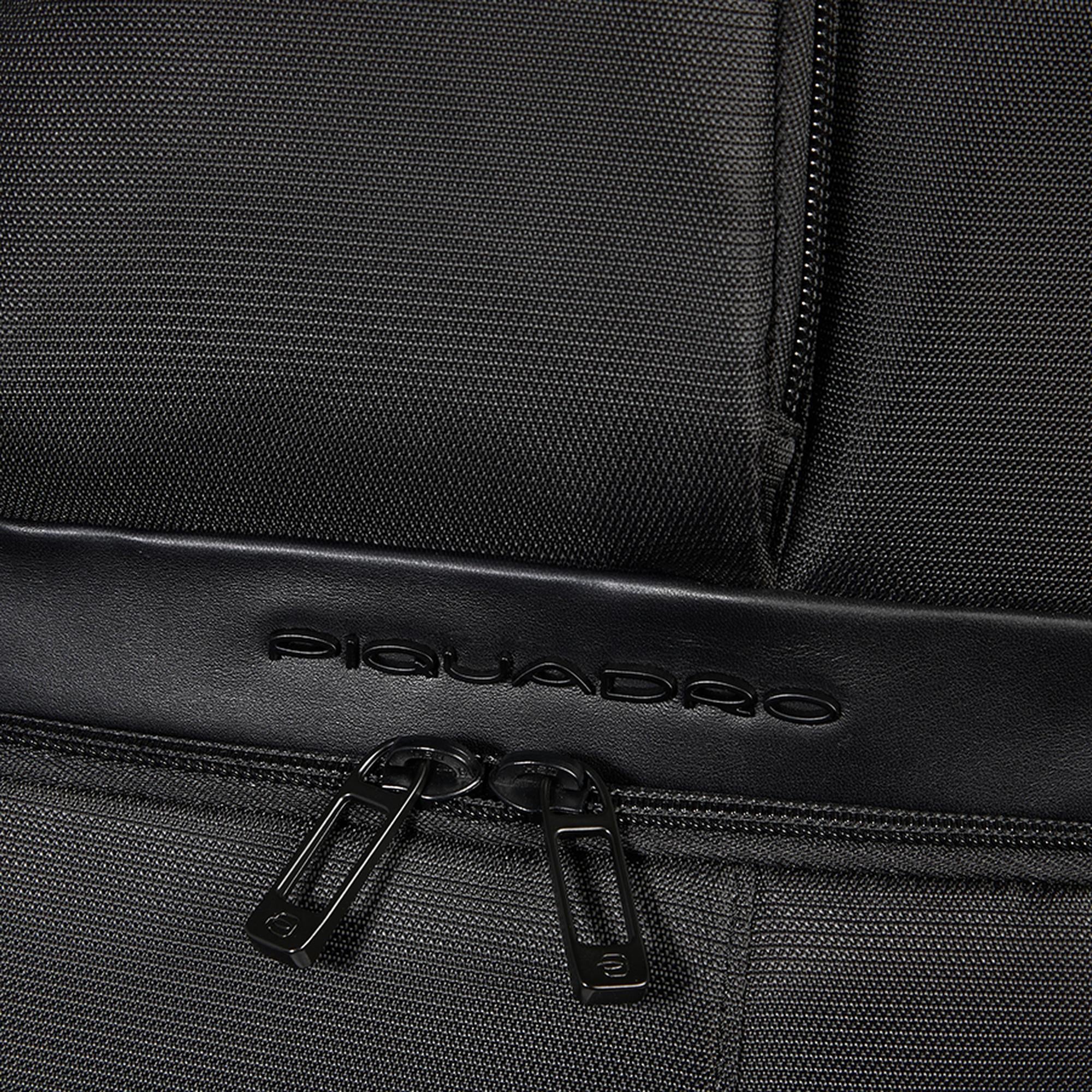 Zaino da viaggio porta pc e iPad® in pelle e tessuto con tasche per AirPods®, botttiglia e Piquadro Smart Tracker, protezioni antiurto e RFID